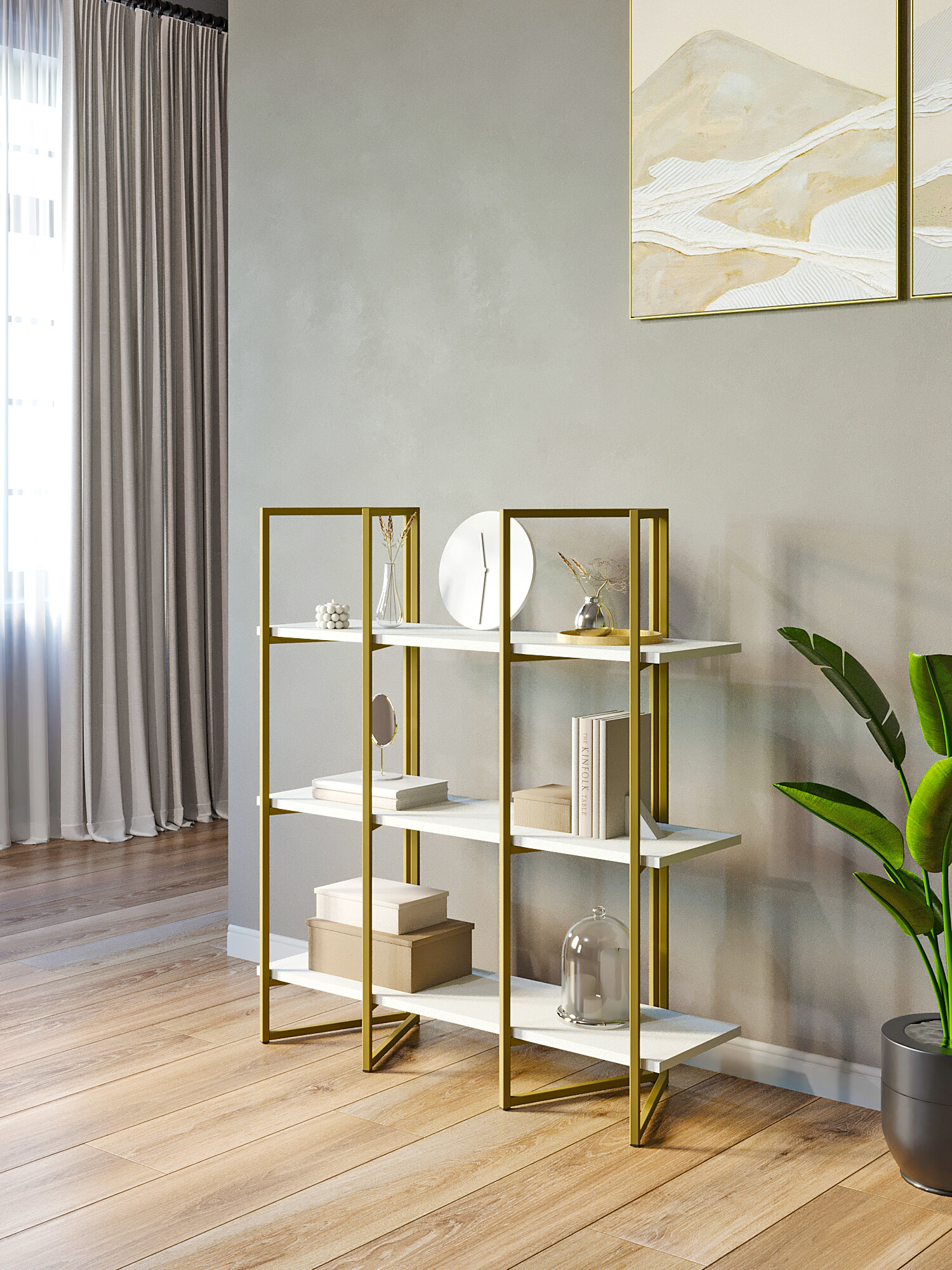 Полка для дома KM LOFT Дивульгато Лайт в гостинную перегородка золотой/белый информация: