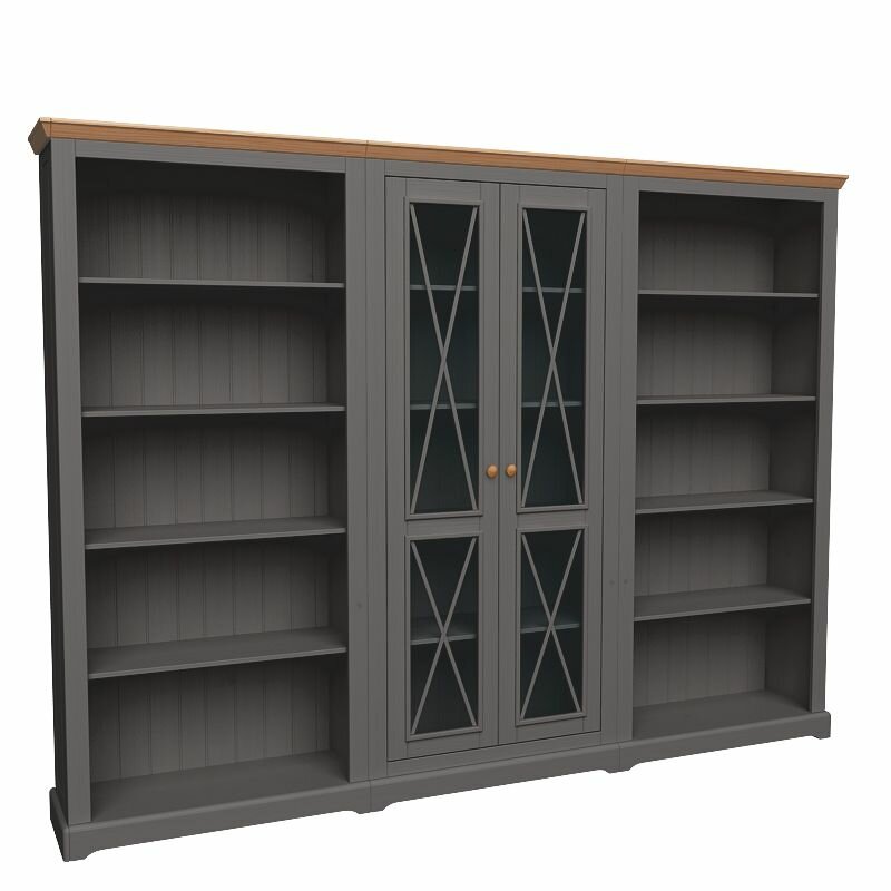 Стеллаж "Фламберже" 4 полки, натуральное дерево, 100х38х214 см. цвет- серый 7012(графит)/ бейц-масло информация: