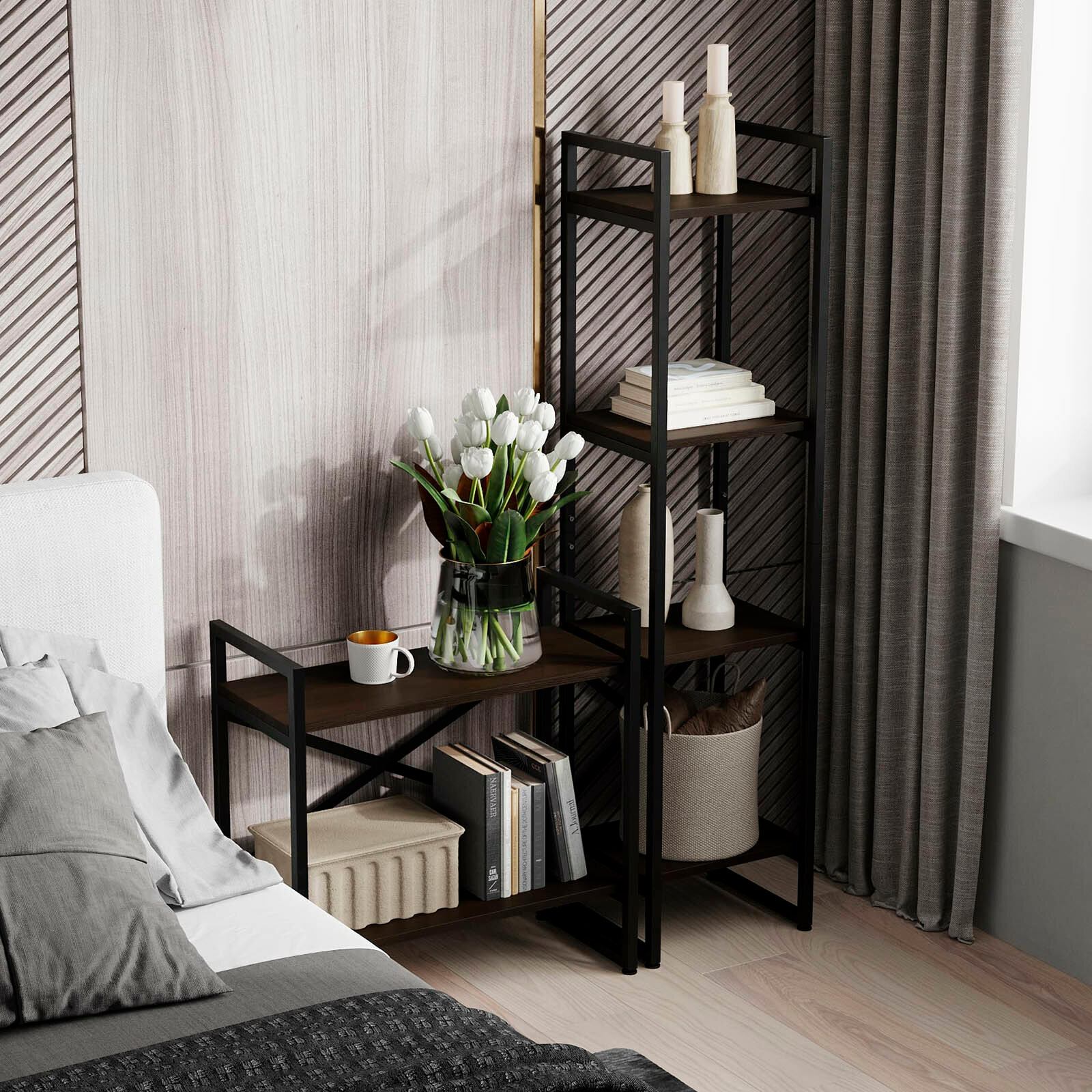 Стеллаж Айсберг Лофт 40/6 / Черный/ с полками дуб крафт табак/ Для дачи/ для дома/ для книг/ в офис