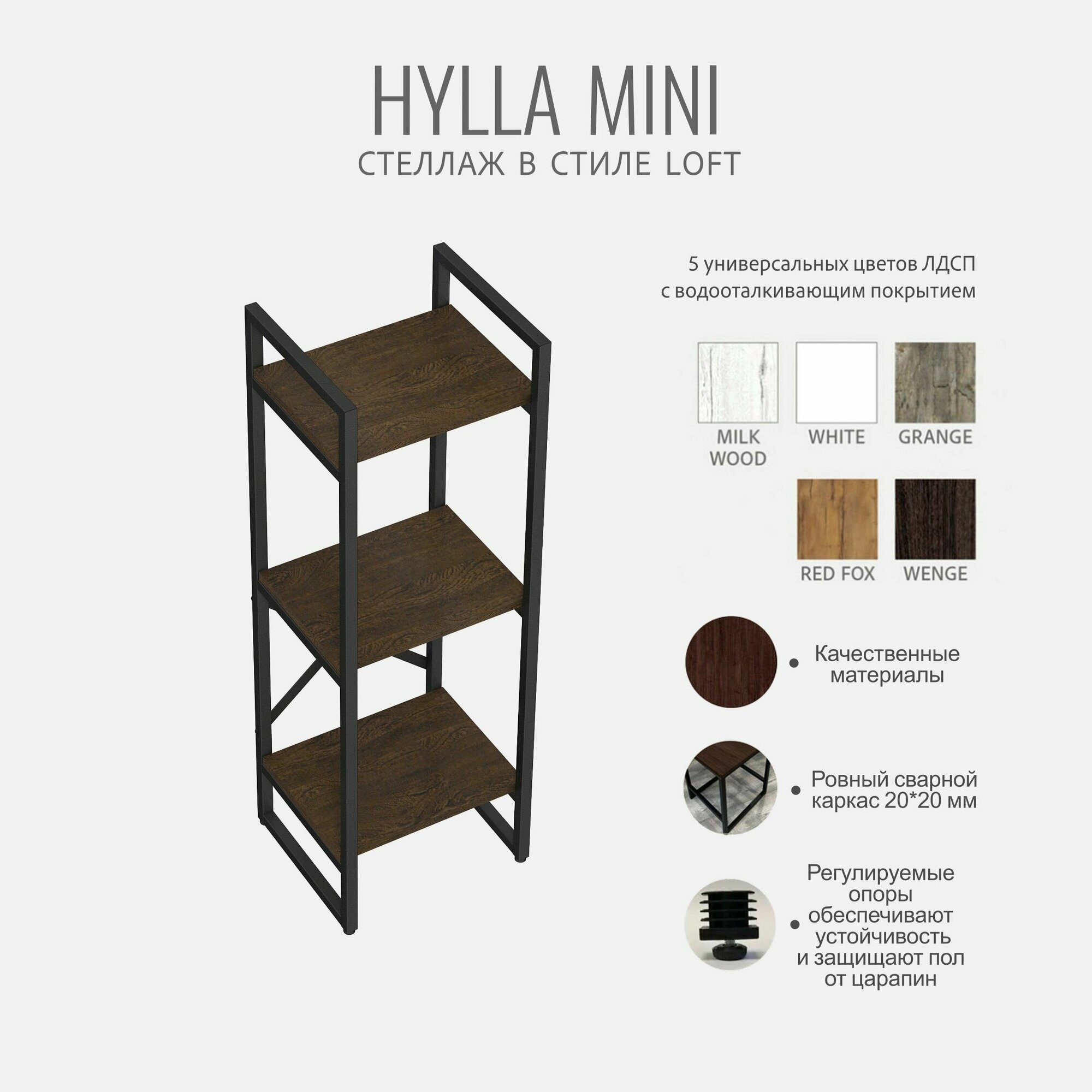 Стеллаж HYLLA mini, темно-коричневый, напольный, модульный, металлический с 3 деревянными полками, 103,5х34х30 см, гростат информация: