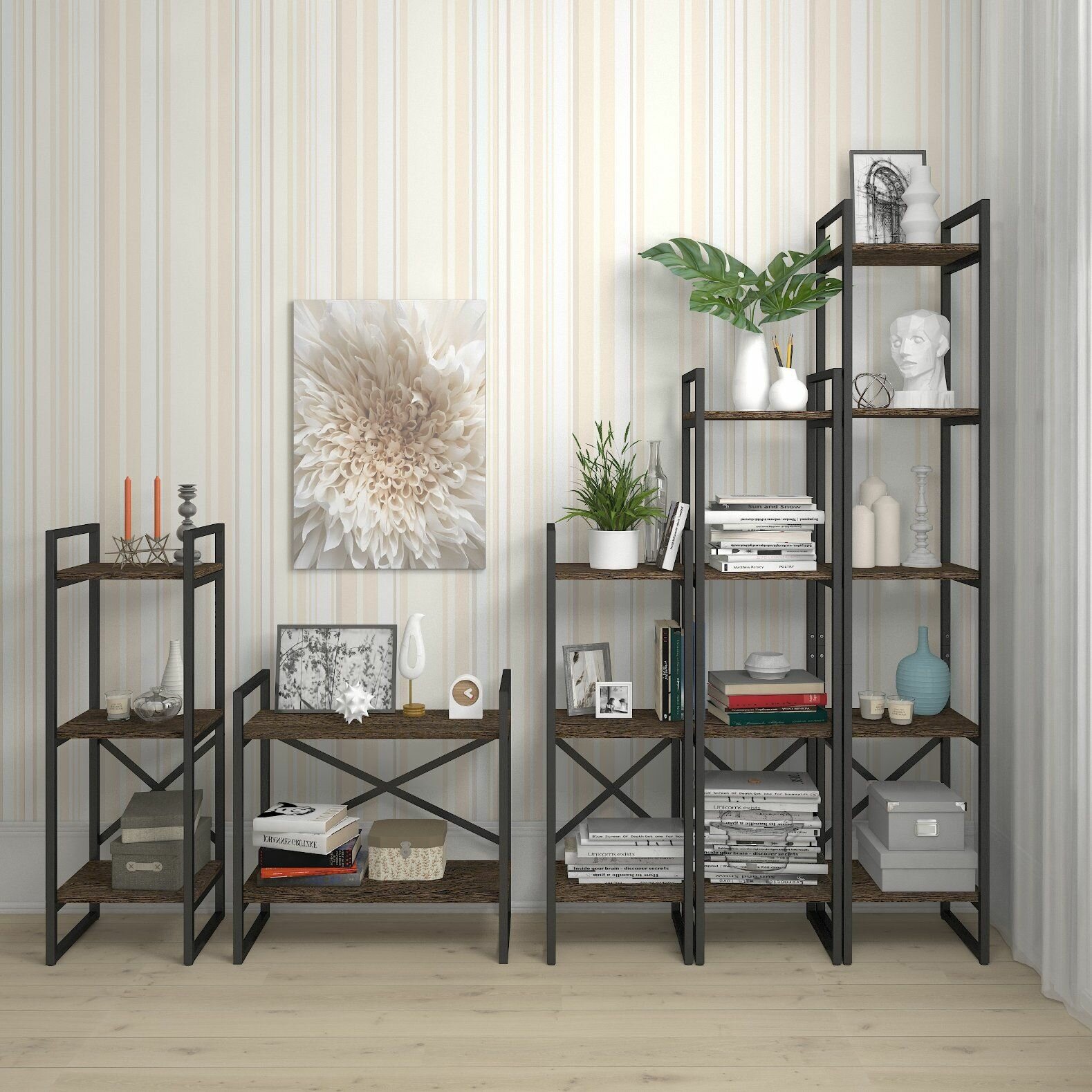 Отзывы на Стеллаж HYLLA mini, темно-коричневый, напольный, модульный, металлический с 3 деревянными полками, 103,5х34х30 см, гростат