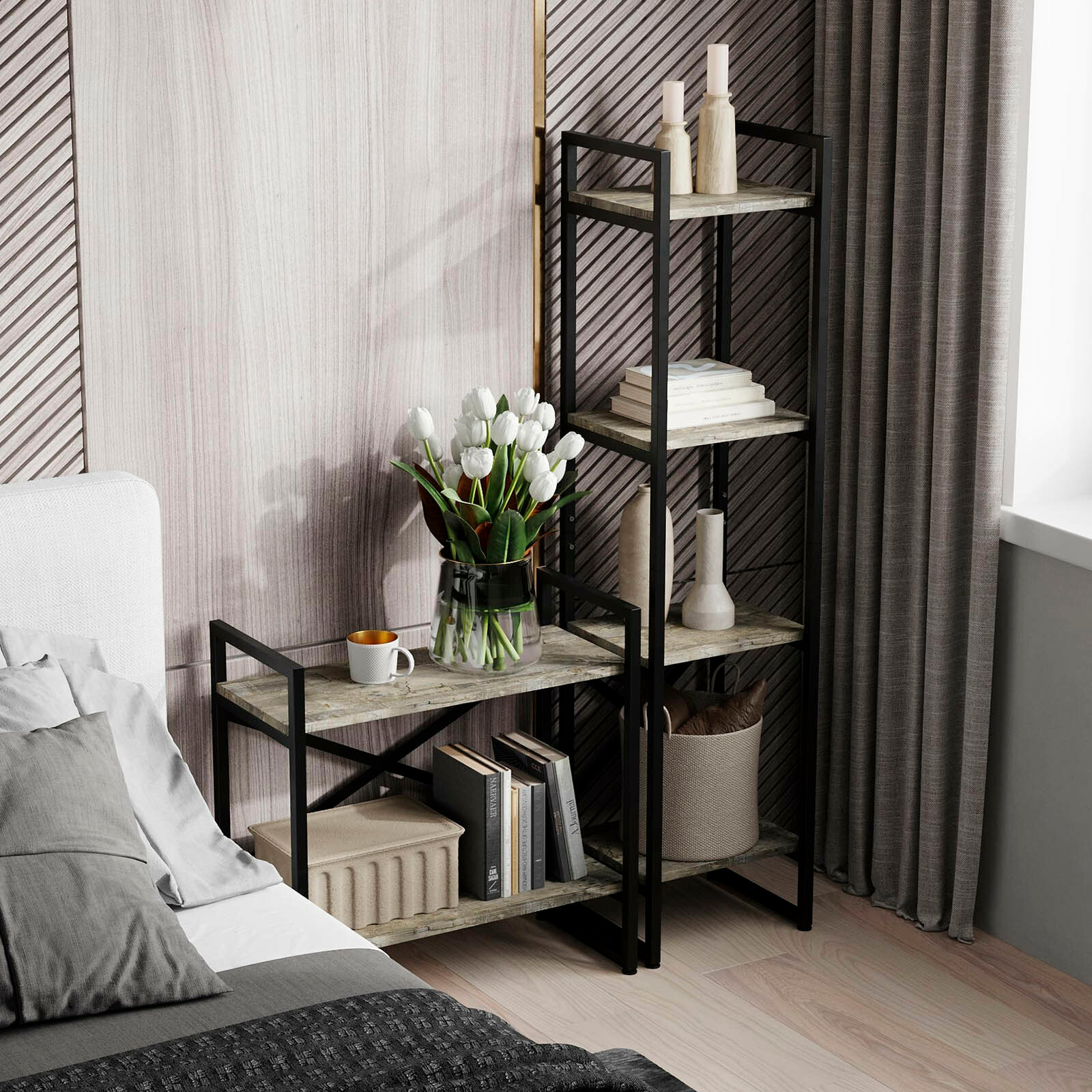 Стеллаж Айсберг Лофт 40/6 / Черный/ с полками дуб крафт табак/ Для дачи/ для дома/ для книг/ в офис