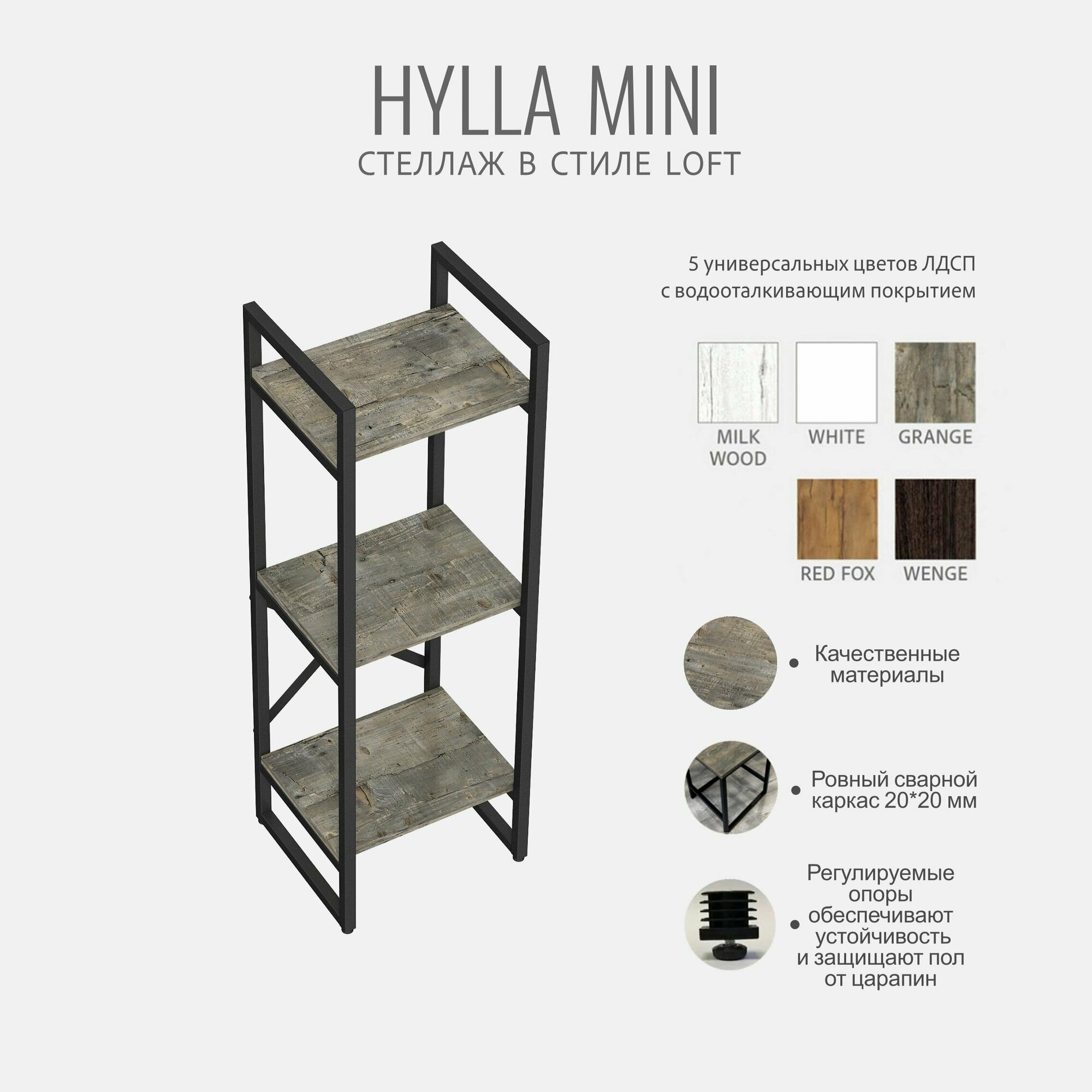 Стеллаж HYLLA mini, серый, напольный, модульный, металлический с 3 деревянными полками, 103,5х34х30 см, гростат информация: