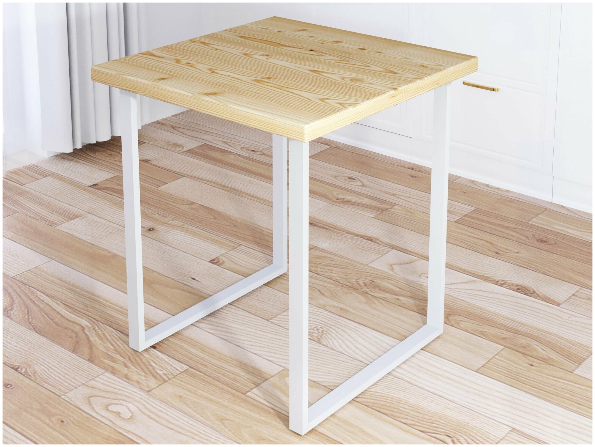 Стол кухонный Loft с квадратной столешницей без покрытия из массива сосны 40 мм и белыми металлическими ножками, 75х75х75 см информация: