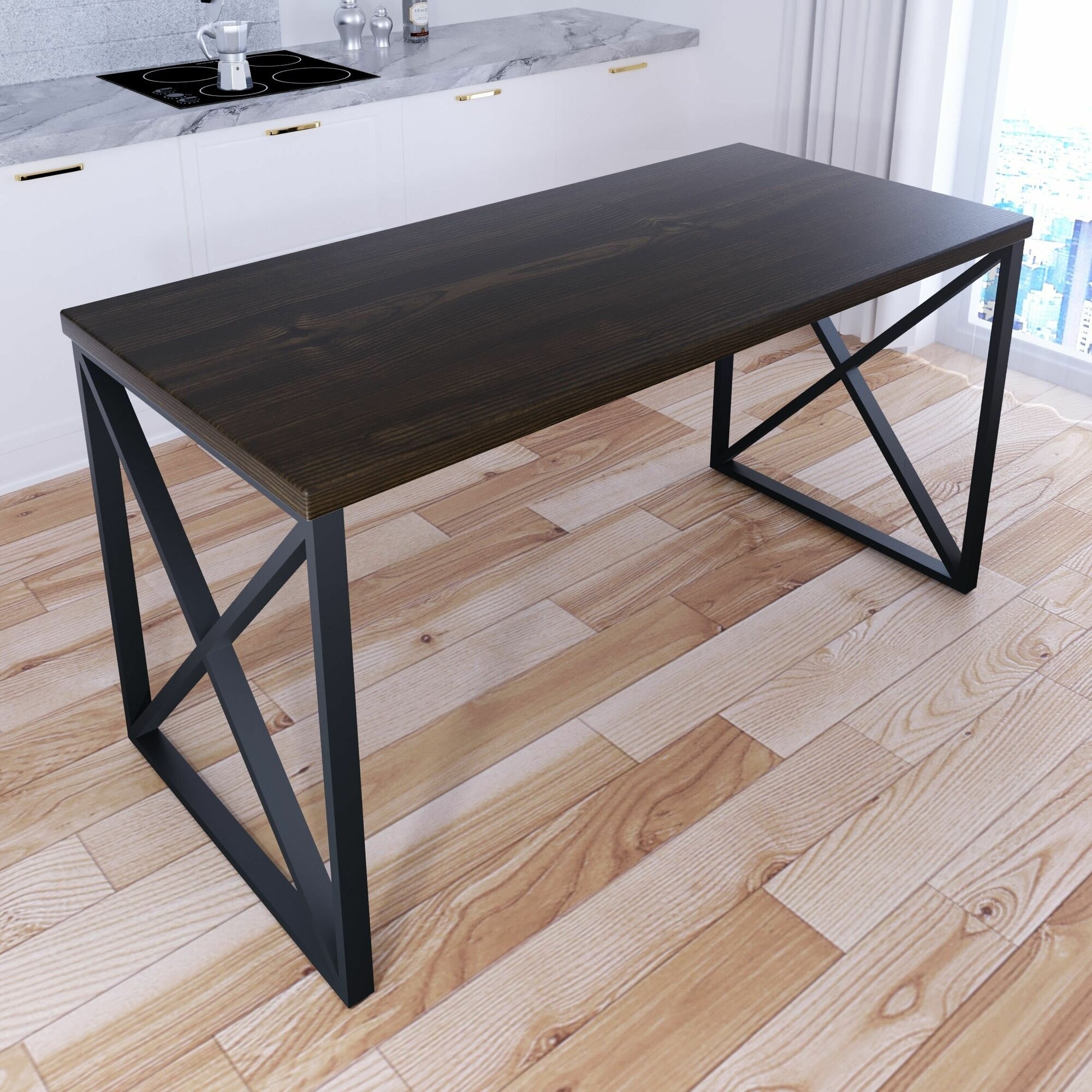 Стол кухонный Loft со столешницей цвета темного дуба из массива сосны 40 мм и черными металлическими крестообразными ножками, 140х60х75 см информация: