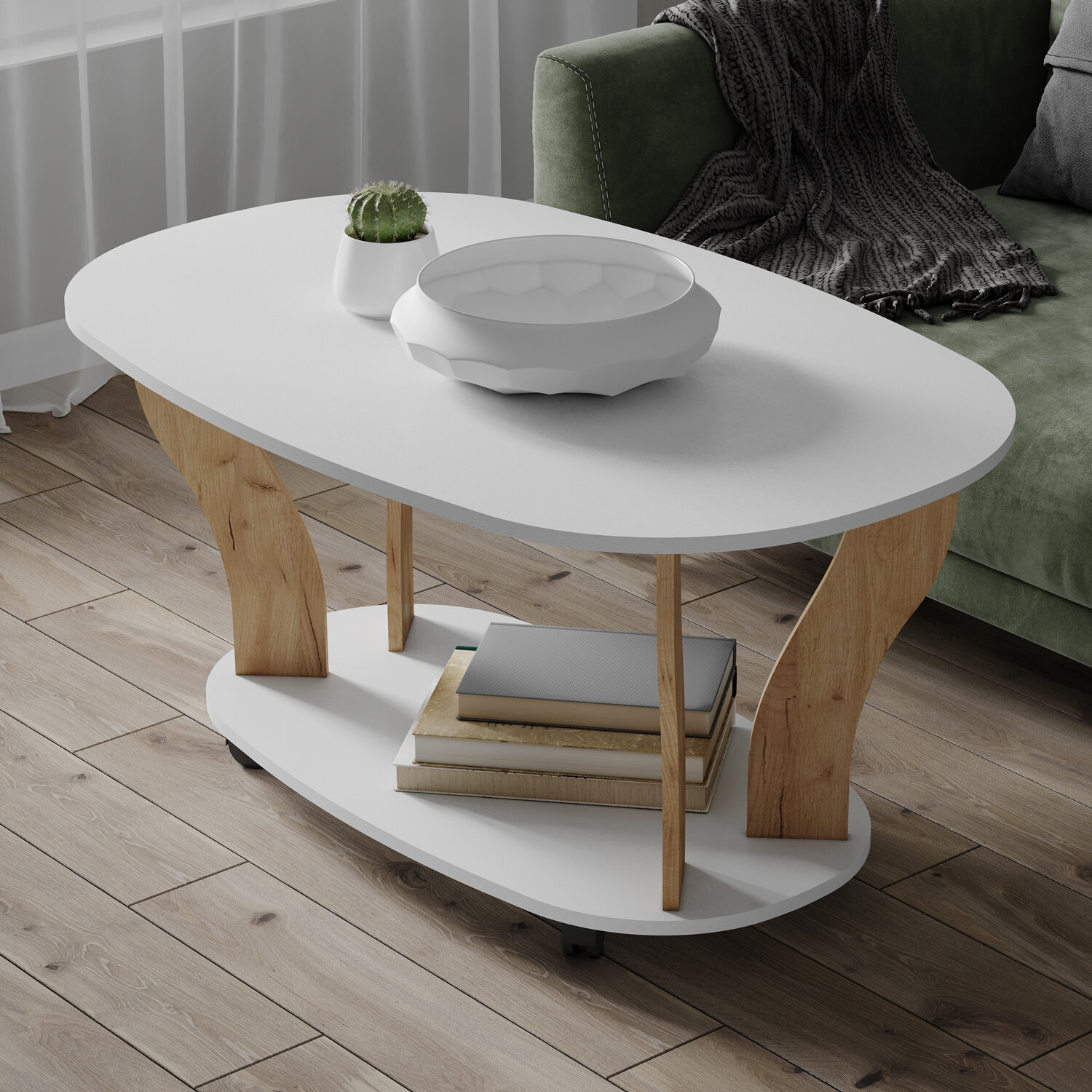 10 цен на Журнальный Стол на колесных опорах, Дуб Крафт Золотой и Белый, 560x900x600 мм, из ЛДСП