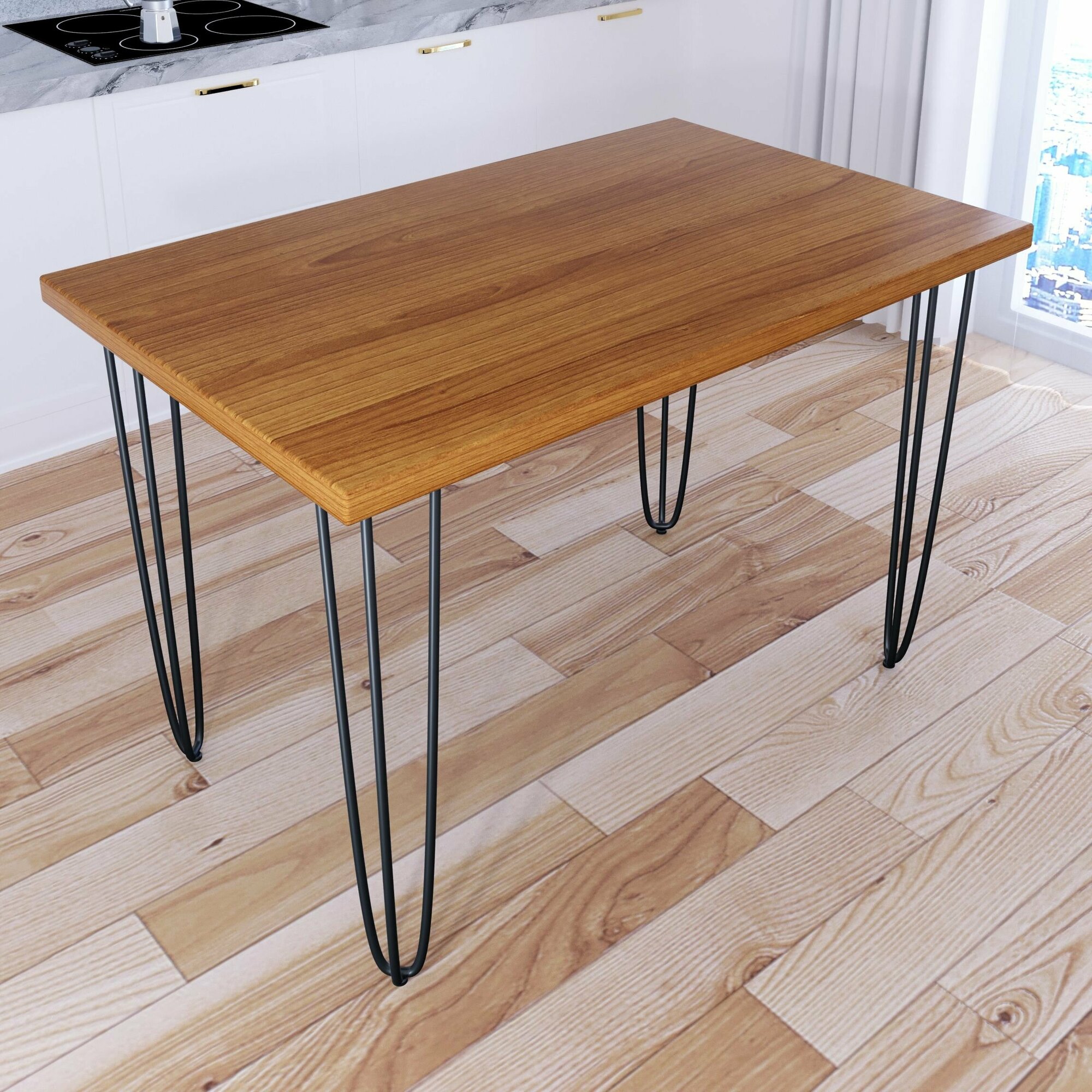 Стол кухонный Loft со столешницей цвета ольхи из массива сосны 40 мм на черных металлических ножках-шпильках, 120x80х75 см информация: