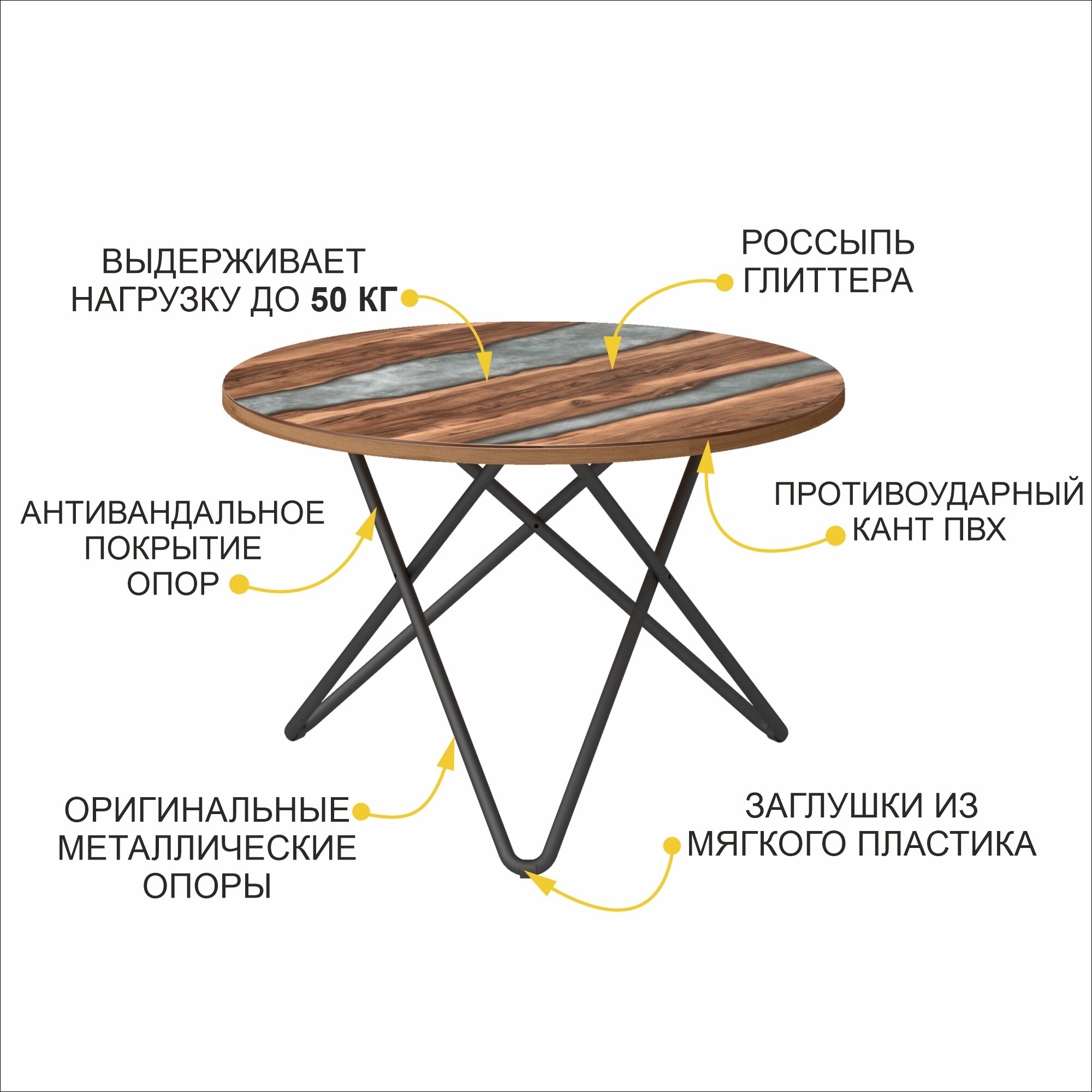 Журнальный стол Рим 28 (05) Река серебристая/Черный, 50х50х53 см 4 379 ₽