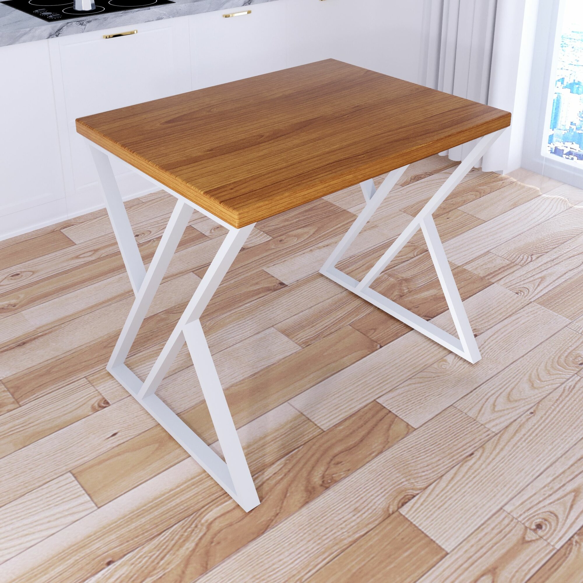 Стол кухонный Loft со столешницей цвета ольхи из массива сосны 40 мм и белыми металлическими Z-образными ножками, 110х80х75 см информация: