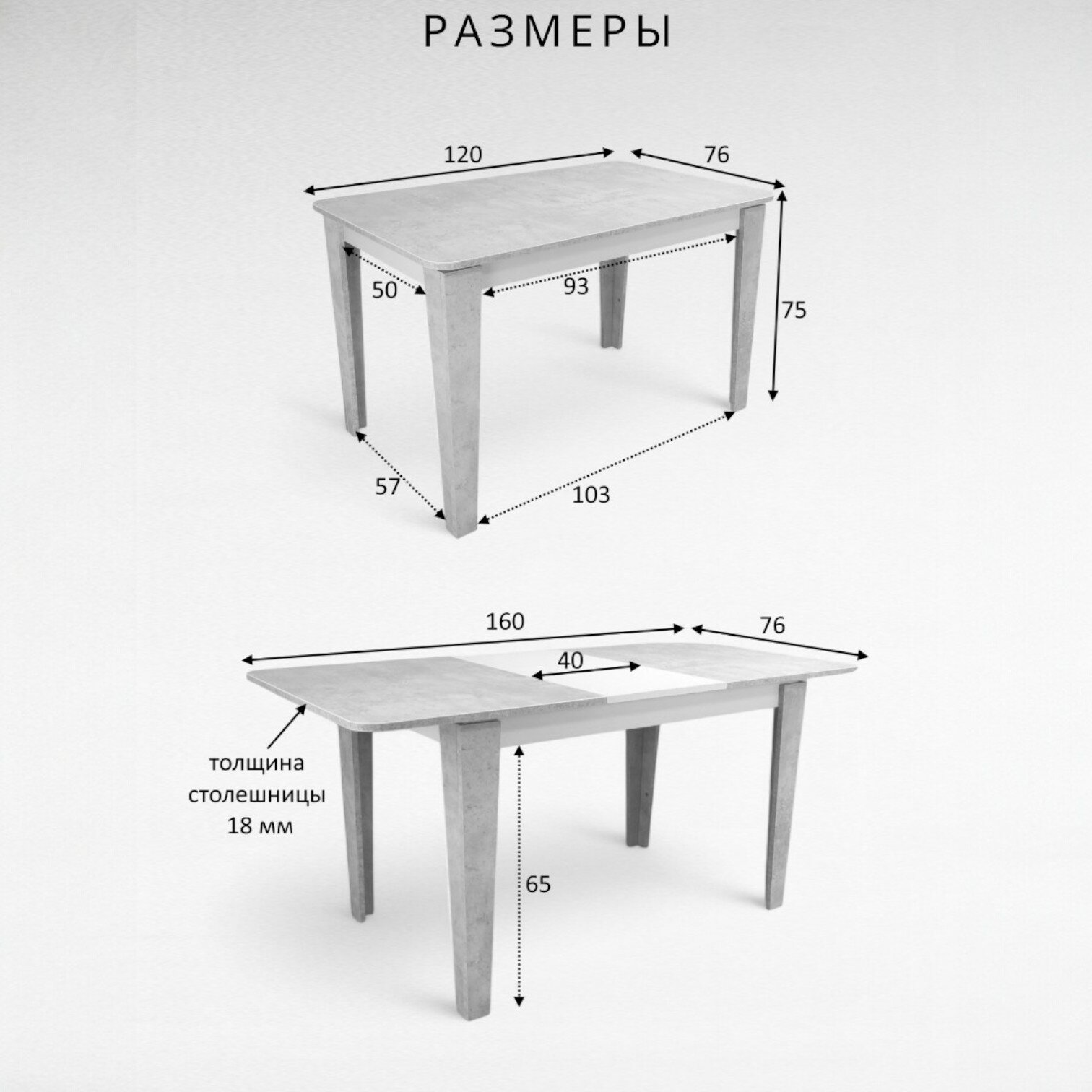Стол кухонный Терминал LOKI, Белый Бетон, белый раздвижной 120/160х76 информация: