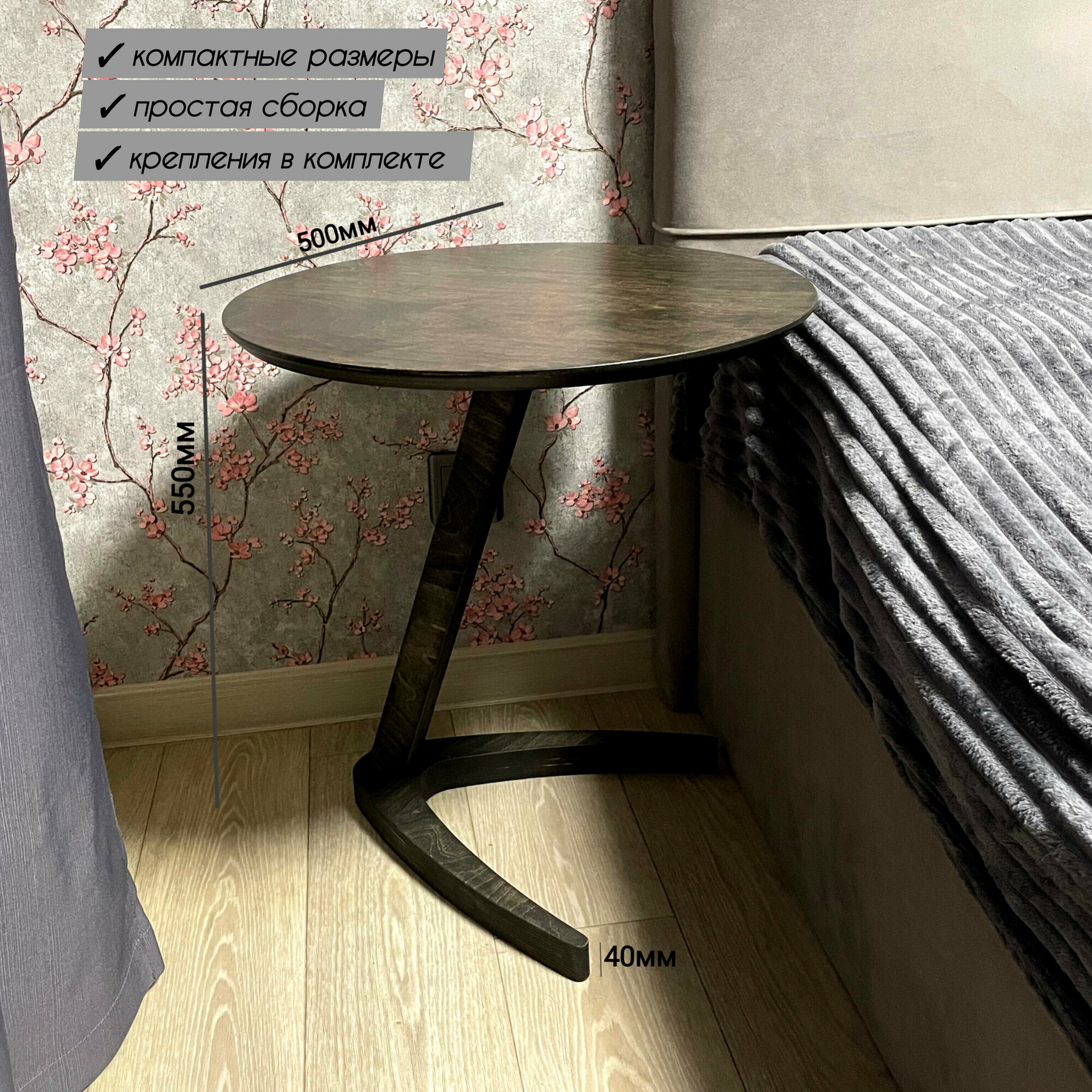 Отзывы на Журнальный столик, Приставной круглый столик, чёрный, 50 х 50 х 55 см