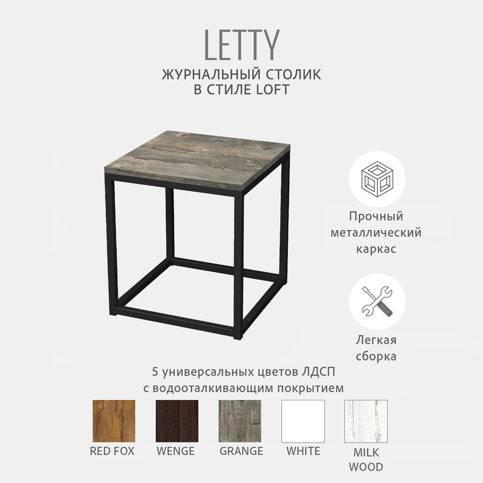 Отзывы на Журнальный столик LETTY loft, серый, приставной, 40x40x44 см, гростат