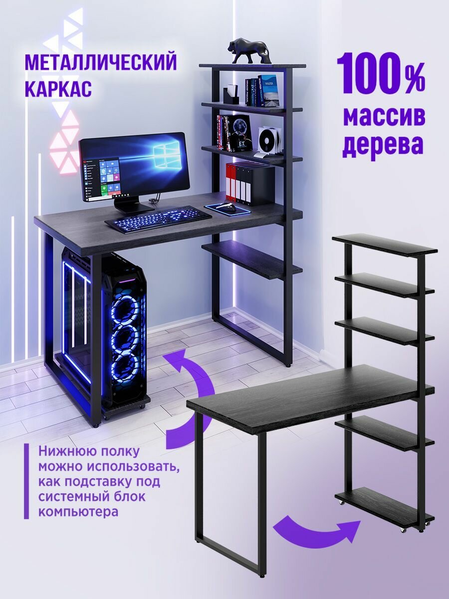 Стол компьютерный Loft с пятью полками, столешница цвета черного оникса из массива сосны 40 мм и черные металлические ножки, 110х60х148 см 27 094 ₽