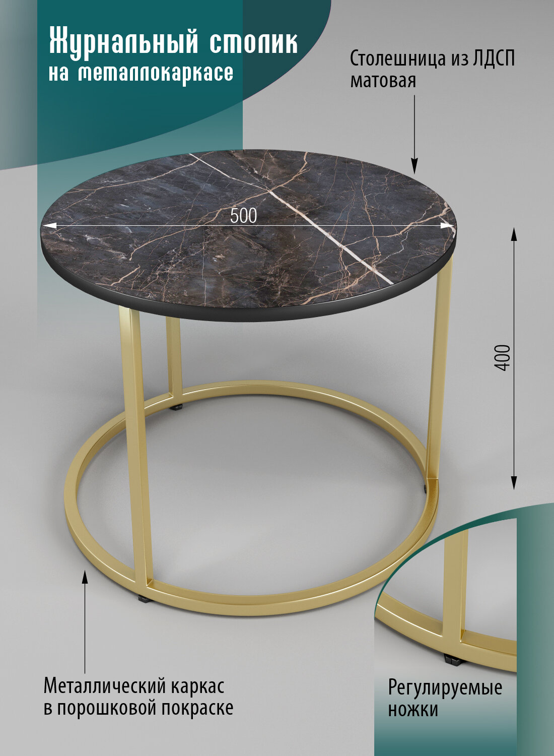 Стол журнальный разборный черный мрамор/золотой информация: