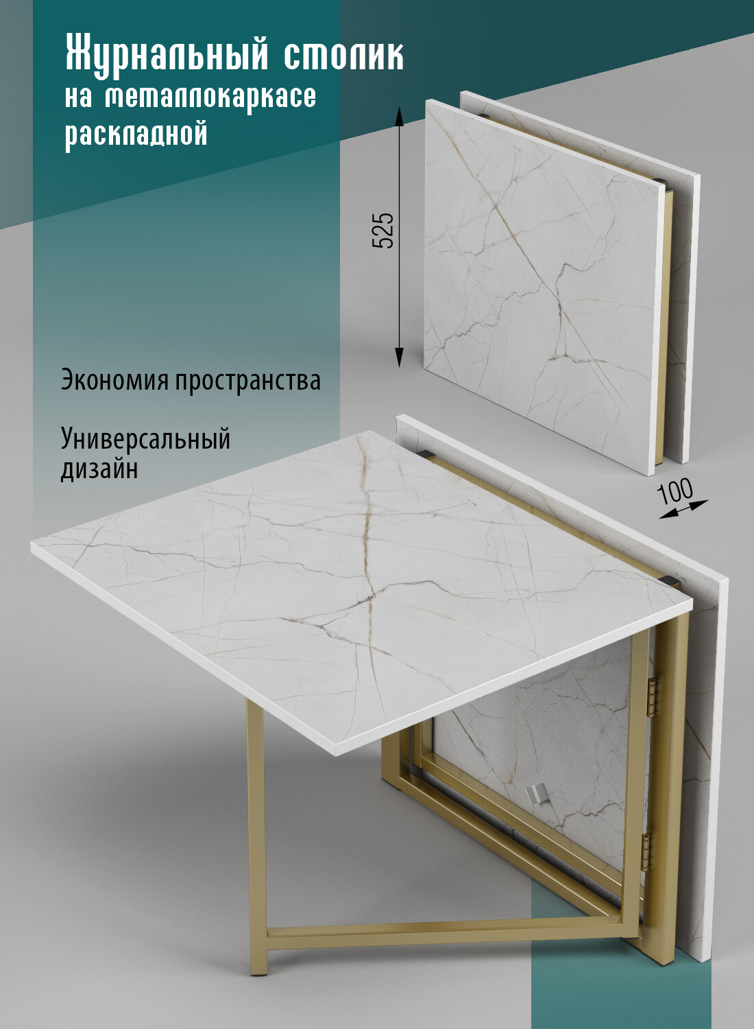 Стол журнальный DiX Home "Книжка", лофт, металлический каркас, ЛДСП, раскладной, 105х59х54 см 6 950 ₽