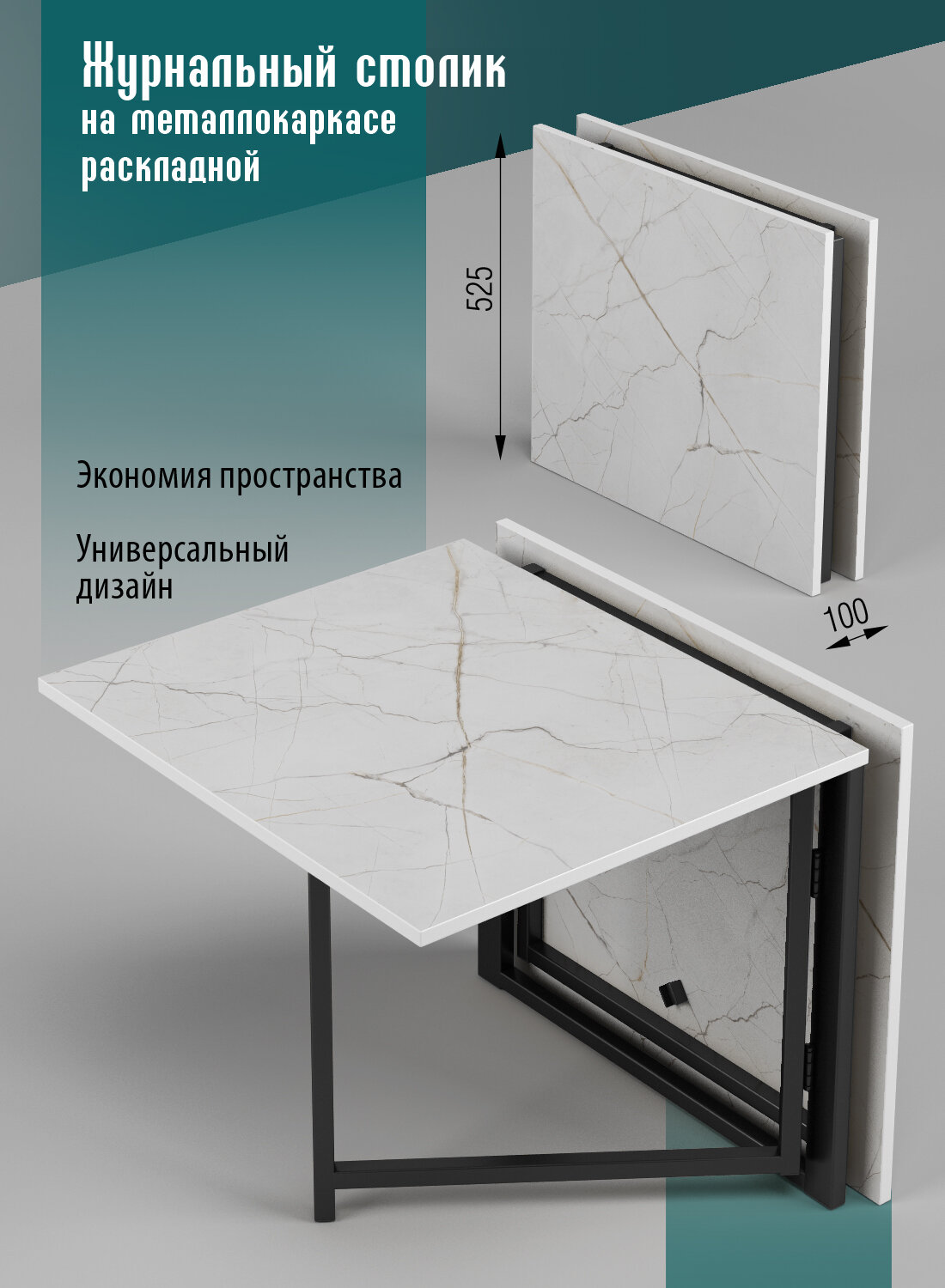 Стол журнальный DiX Home "Книжка", лофт, металлический каркас, ЛДСП, раскладной, 105х59х54 см информация: