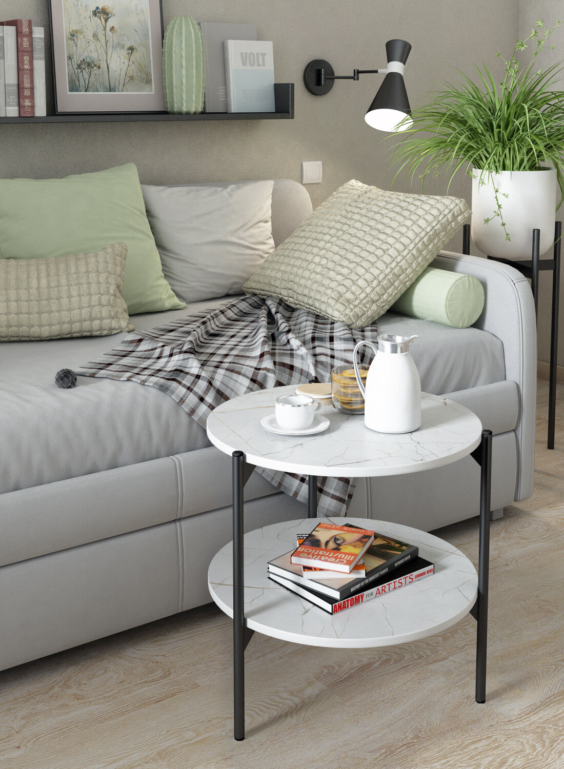Столик журнальный DiX HOME "Шафран", двухъярусный, лофт, черный/белый 3 850 ₽