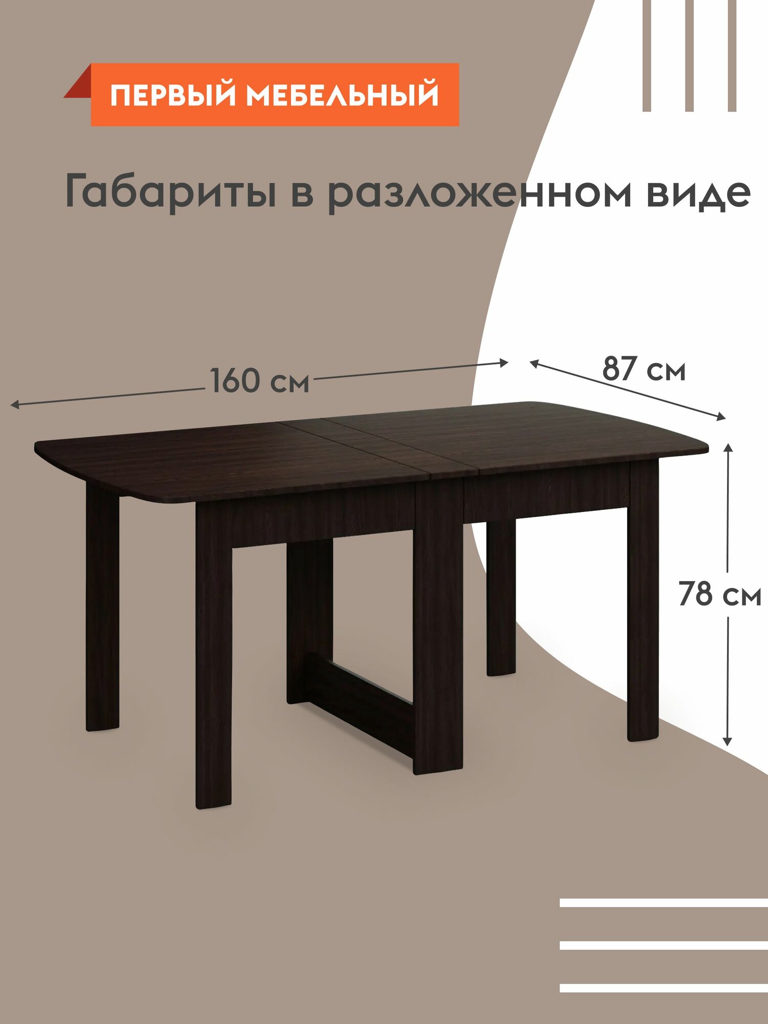 Стол-книжка кухонный, обеденный Тайга 2 раскладной, 14.5х87х78 см, Венге информация: