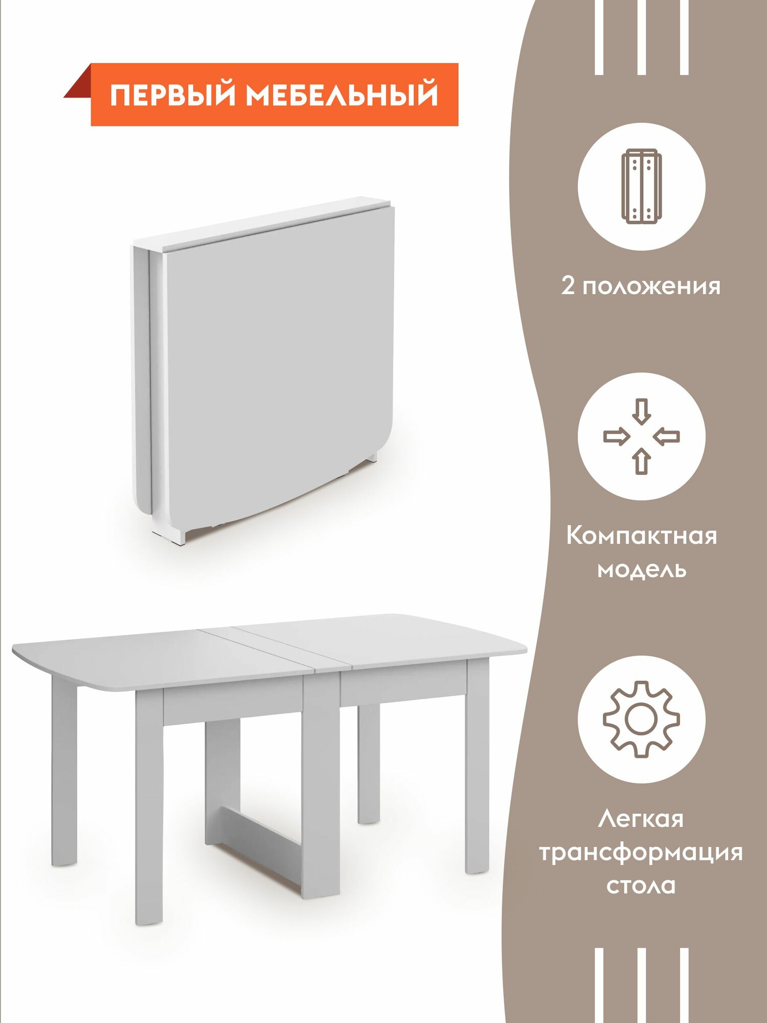 Стол-книжка кухонный, обеденный Тайга 2 раскладной, 14.5х87х78 см, Белый информация: