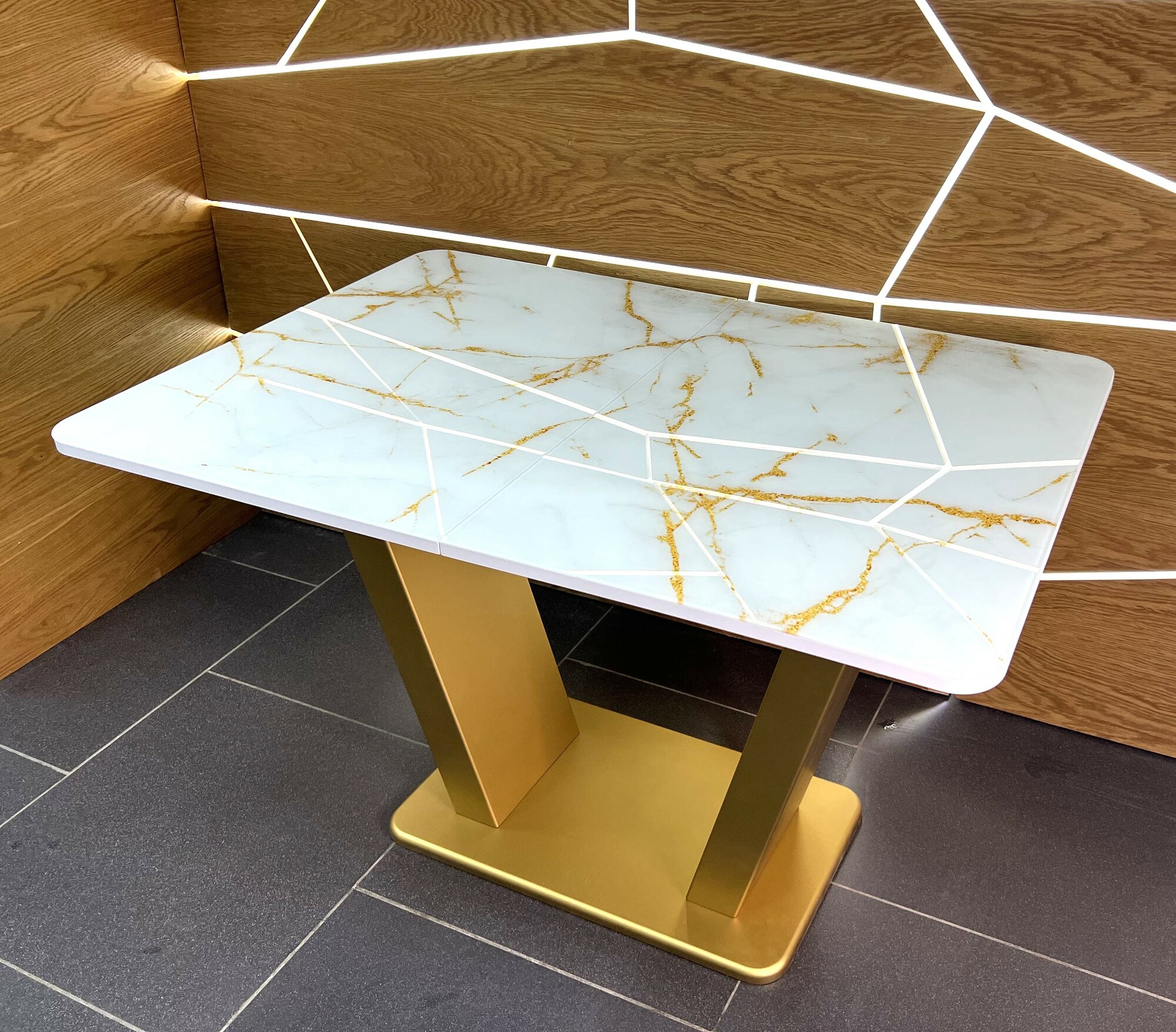 Стол обеденный Денвер раздвижной, 120 х 80 х 75 Мрамор Сахара с золотыми опорами информация: