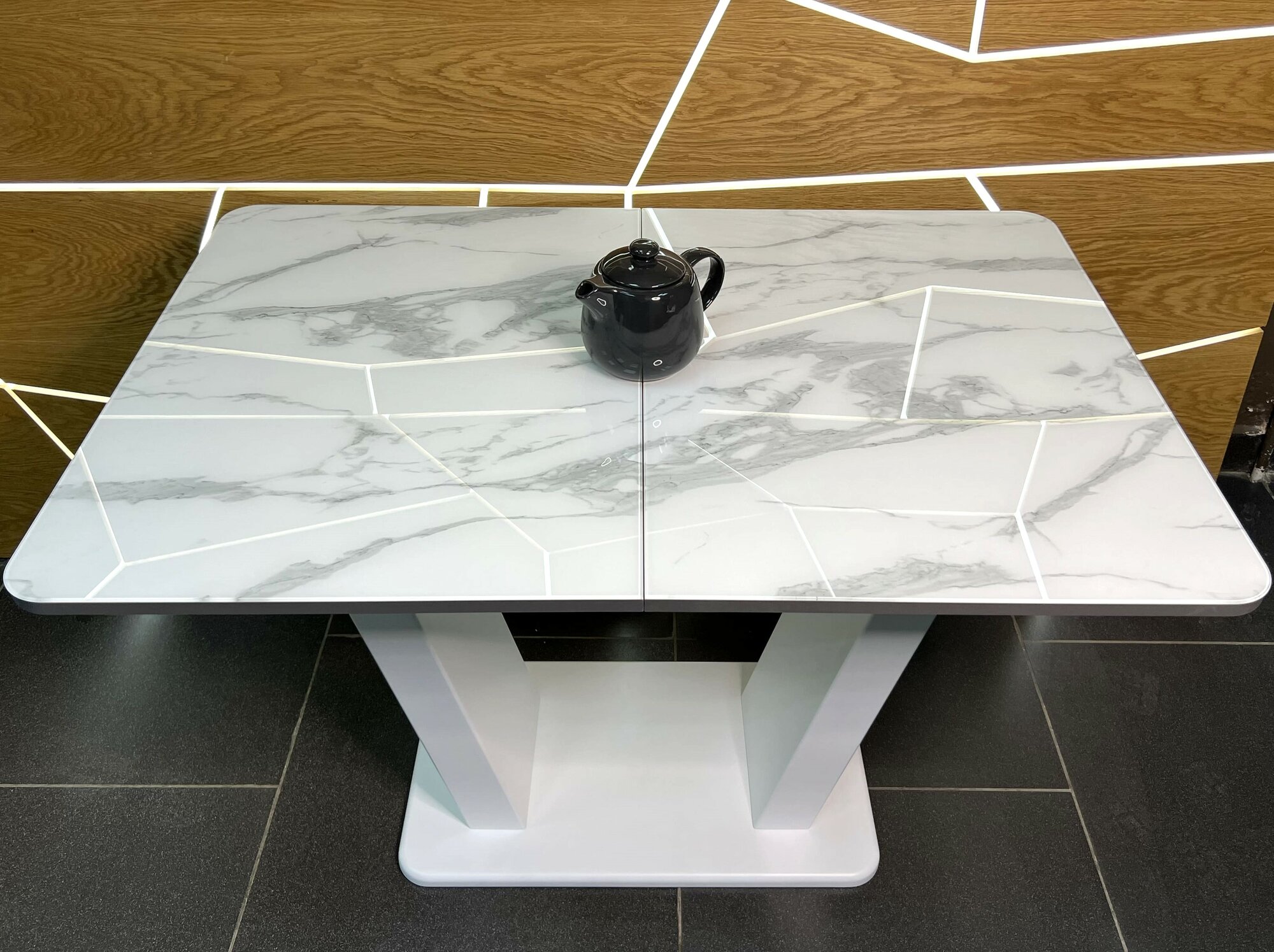 Отзывы на Стол обеденный Денвер раздвижной, 120 х 80 х 75 Мрамор Каррера с белыми опорами