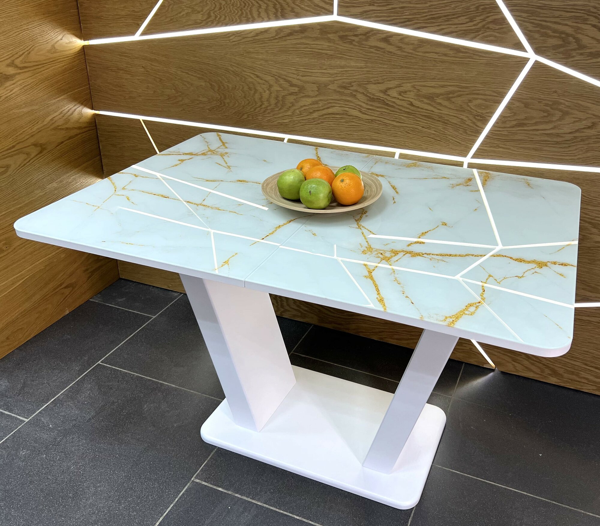Стол обеденный Денвер раздвижной, 120 х 80 х 75 Мрамор Золотой с белыми опорами 34 900 ₽