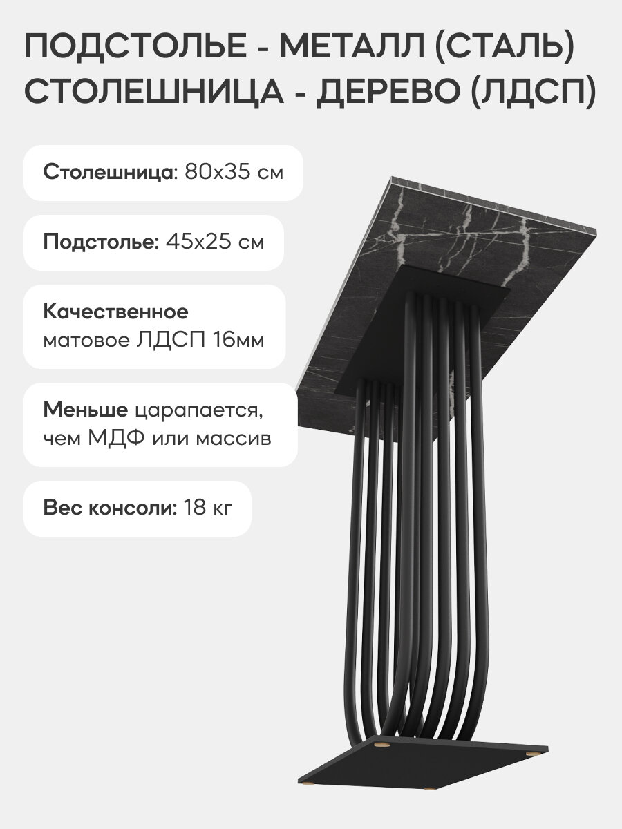 Отзывы на GEN GROUP Столик консольный ARFEO 80х35 см, черный мрамор с черным подстольем