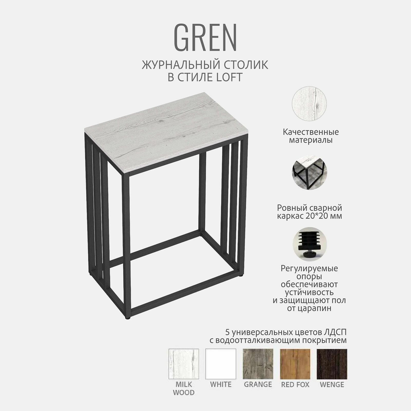 Журнальный столик GREN loft, светло-серый, консольный приставной металлический столик в стиле лофт, 50х30х64 см, гростат информация: