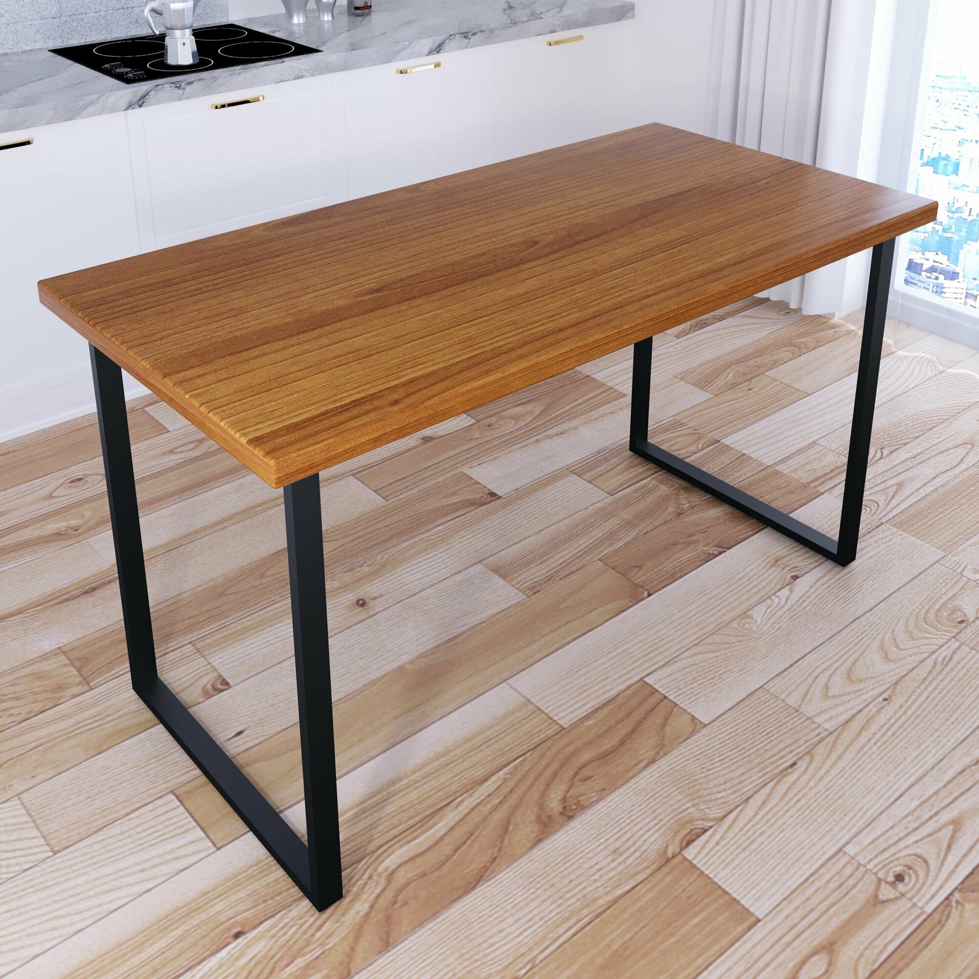 Стол кухонный Loft со столешницей цвета ольхи из массива сосны 40 мм и черными металлическими ножками, 130х60х75 см информация: