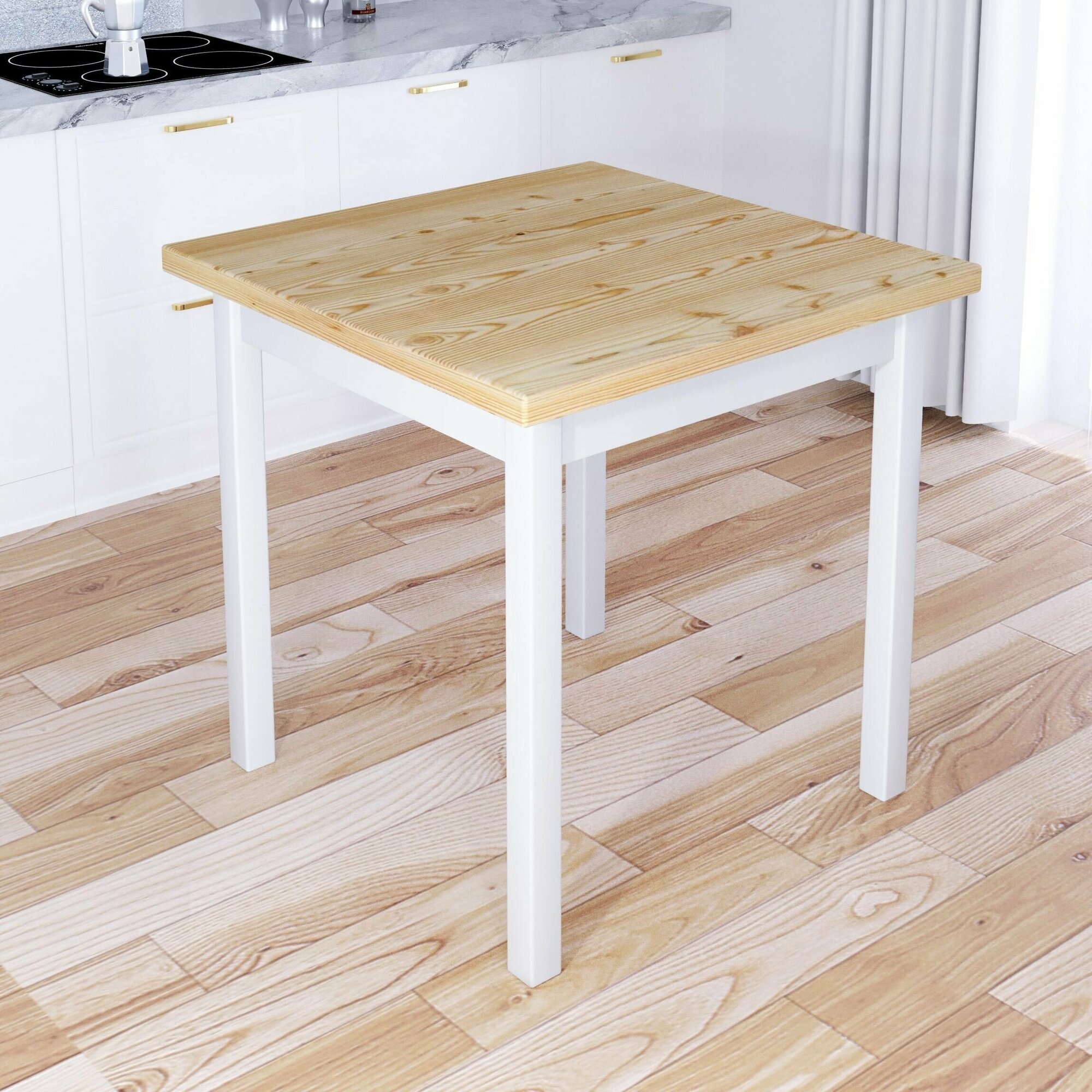 Стол кухонный Классика с квадратной лакированной столешницей из массива сосны 40 мм и белыми ножками, 70х70х75 см информация: