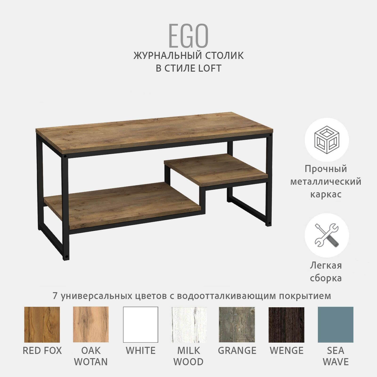 Отзывы на Журнальный столик EGO, коричневый, приставной стол стеллаж с полками в стиле лофт, 86,2х40,2х43,6 см, гростат