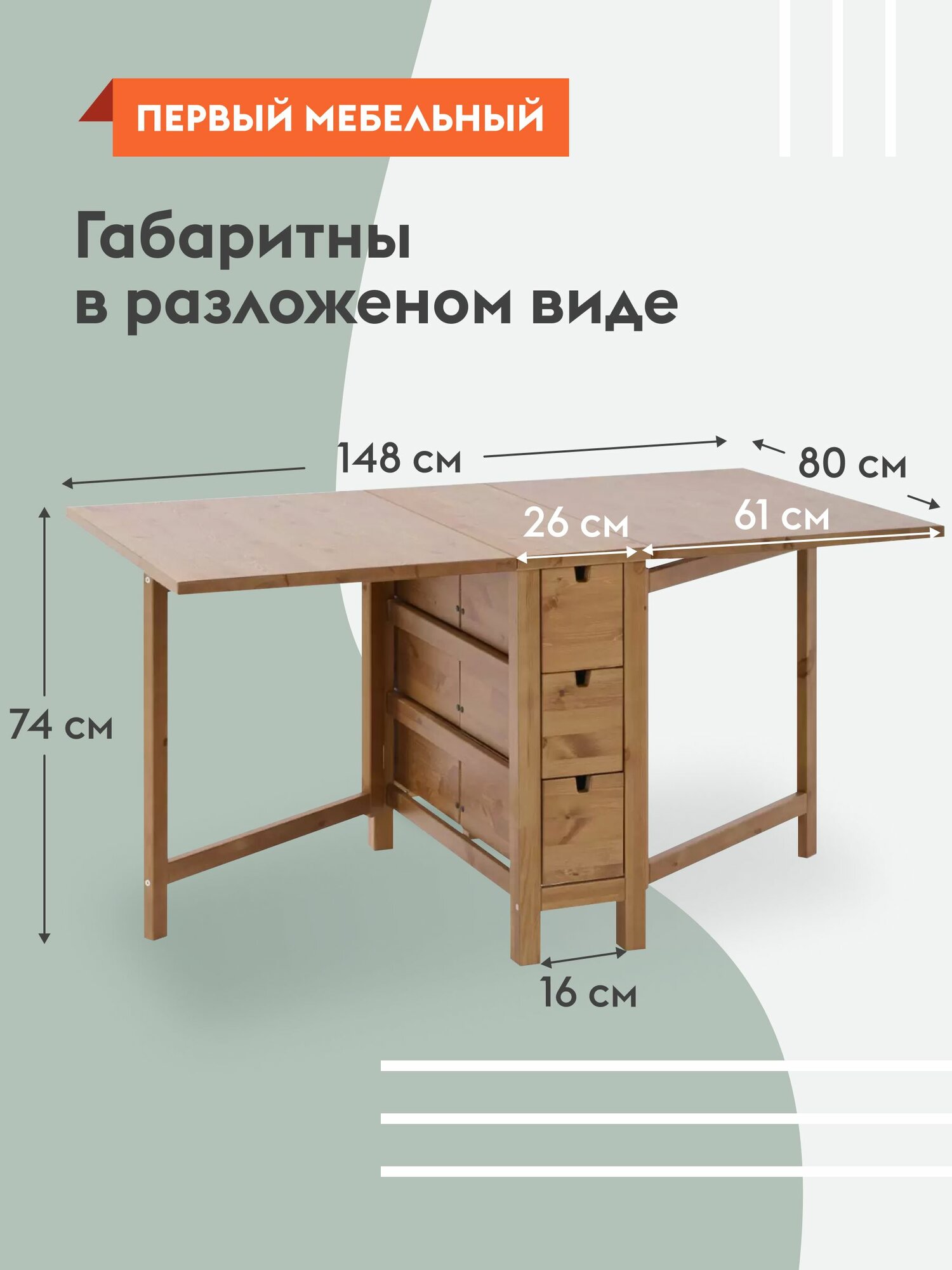 Стол-книжка кухонный, обеденный Мырпом раскладной, 26х80х74 см, Коричневый, массив сосны информация: