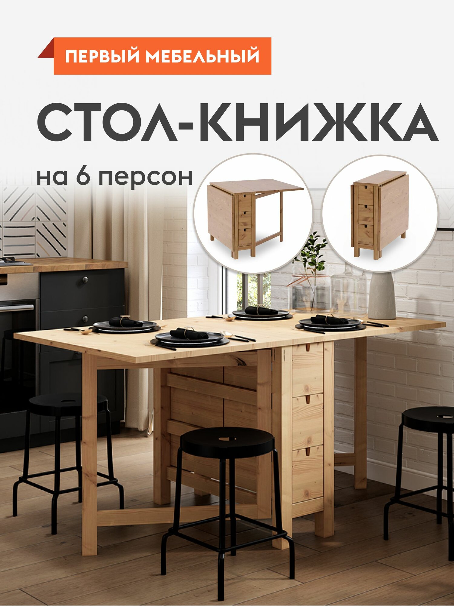 Отзывы на Стол-книжка кухонный, обеденный Мырпом раскладной, 26х80х74 см, Коричневый, массив сосны