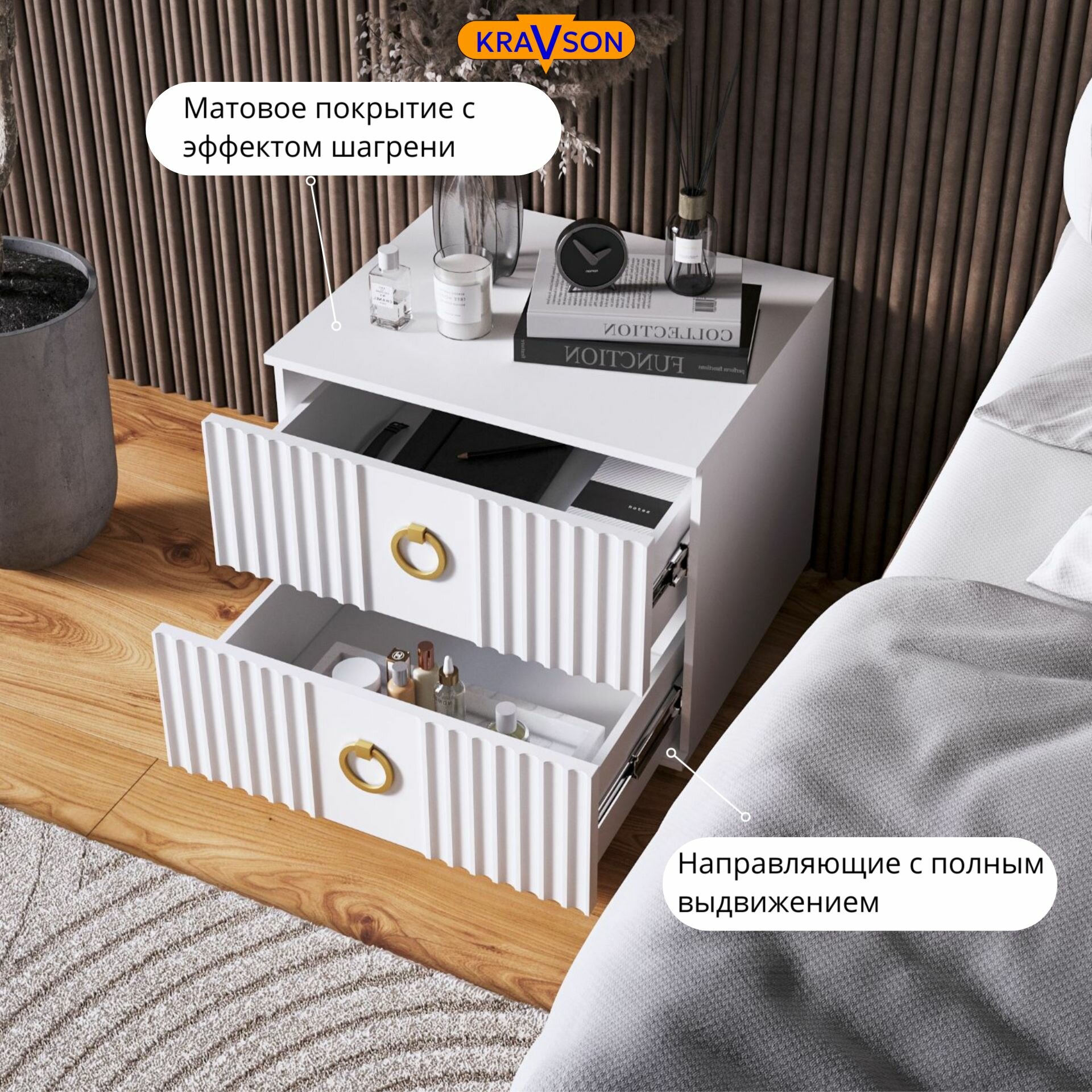 Тумба прикроватная белая напольная с двумя ящиками, 45х38х43 см информация: