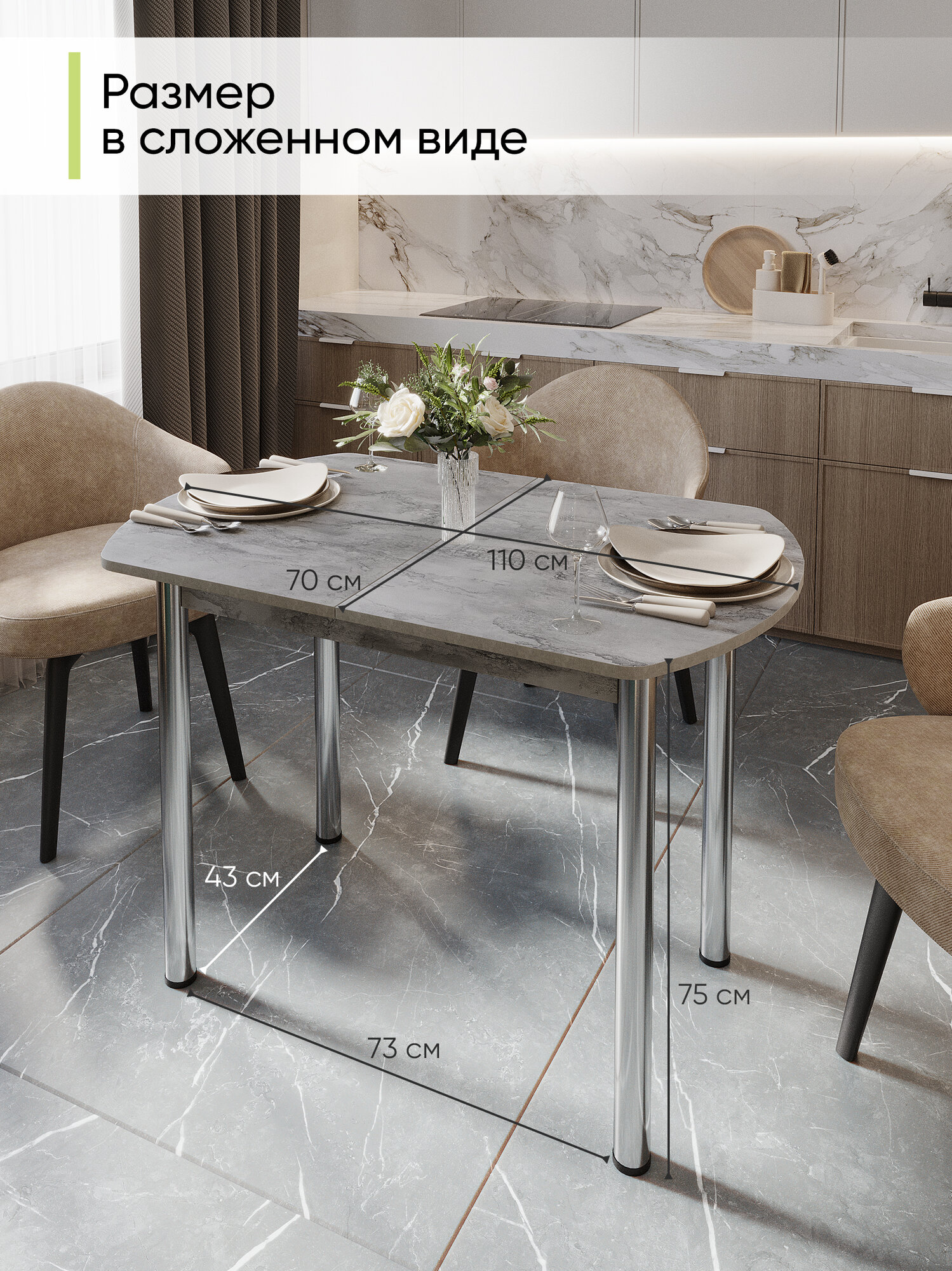 Отзывы на Стол кухонный обеденный раздвижной Европейский, Айрон рок, ЛДСП, 110-140х70х75 см
