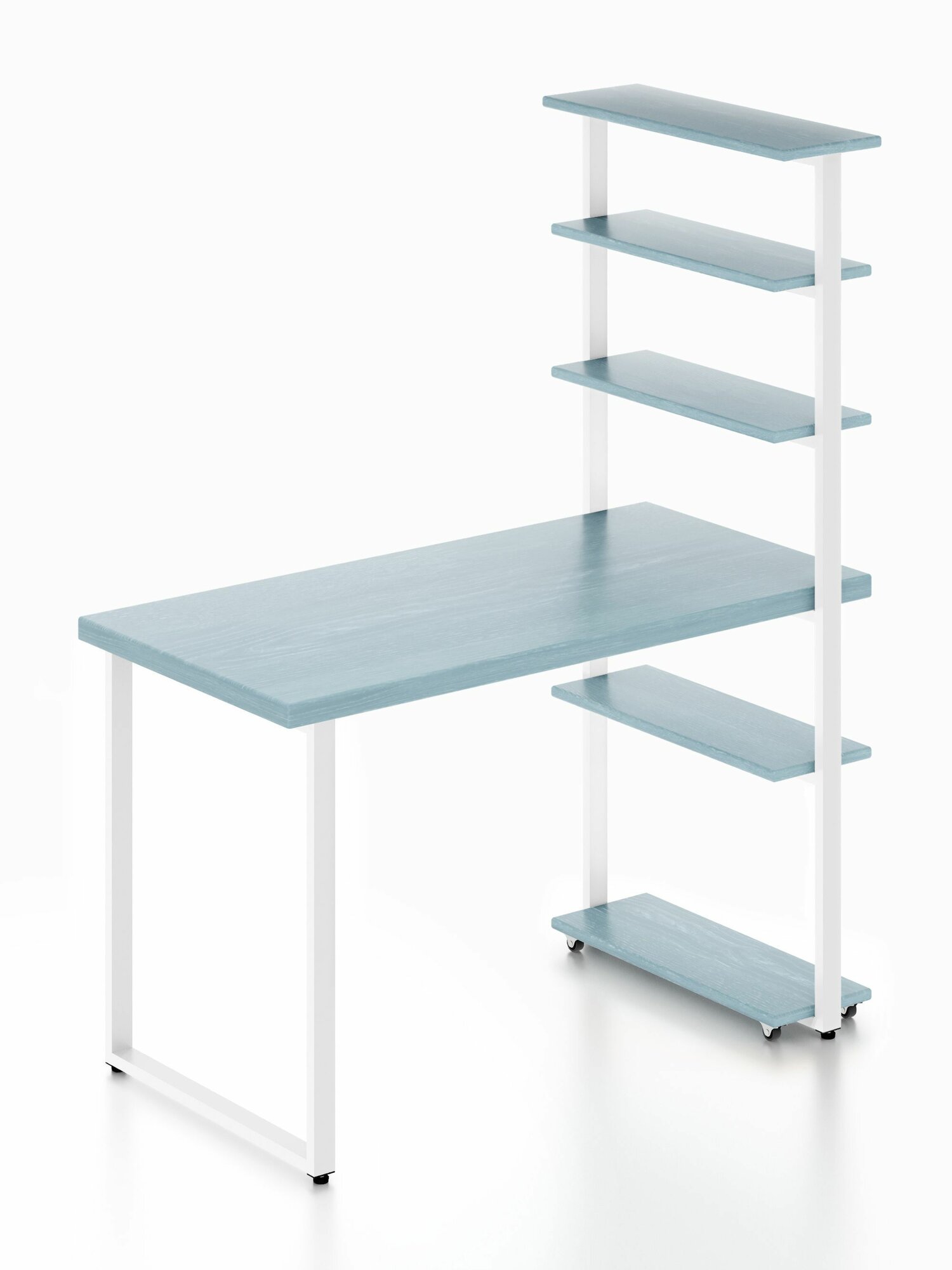 Стол компьютерный Loft с пятью полками, столешница голубого цвета из массива сосны 40 мм и белые металлические ножки, 90х60х148 см 26 298 ₽