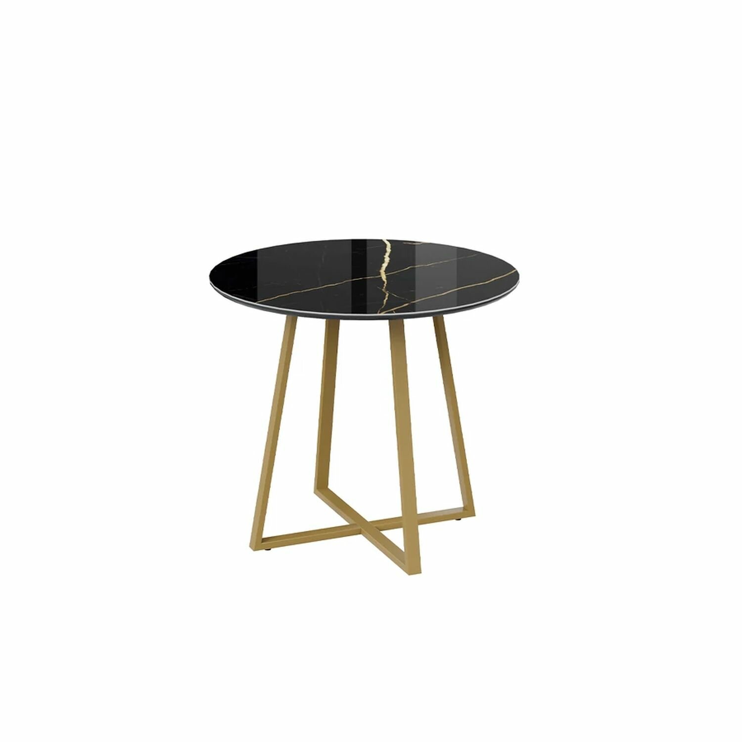 Стол кухонный обеденный круглый Глянцевый Чёрный Мрамор/Золотой Муар, милан 2, 90х90х75,7 см информация: