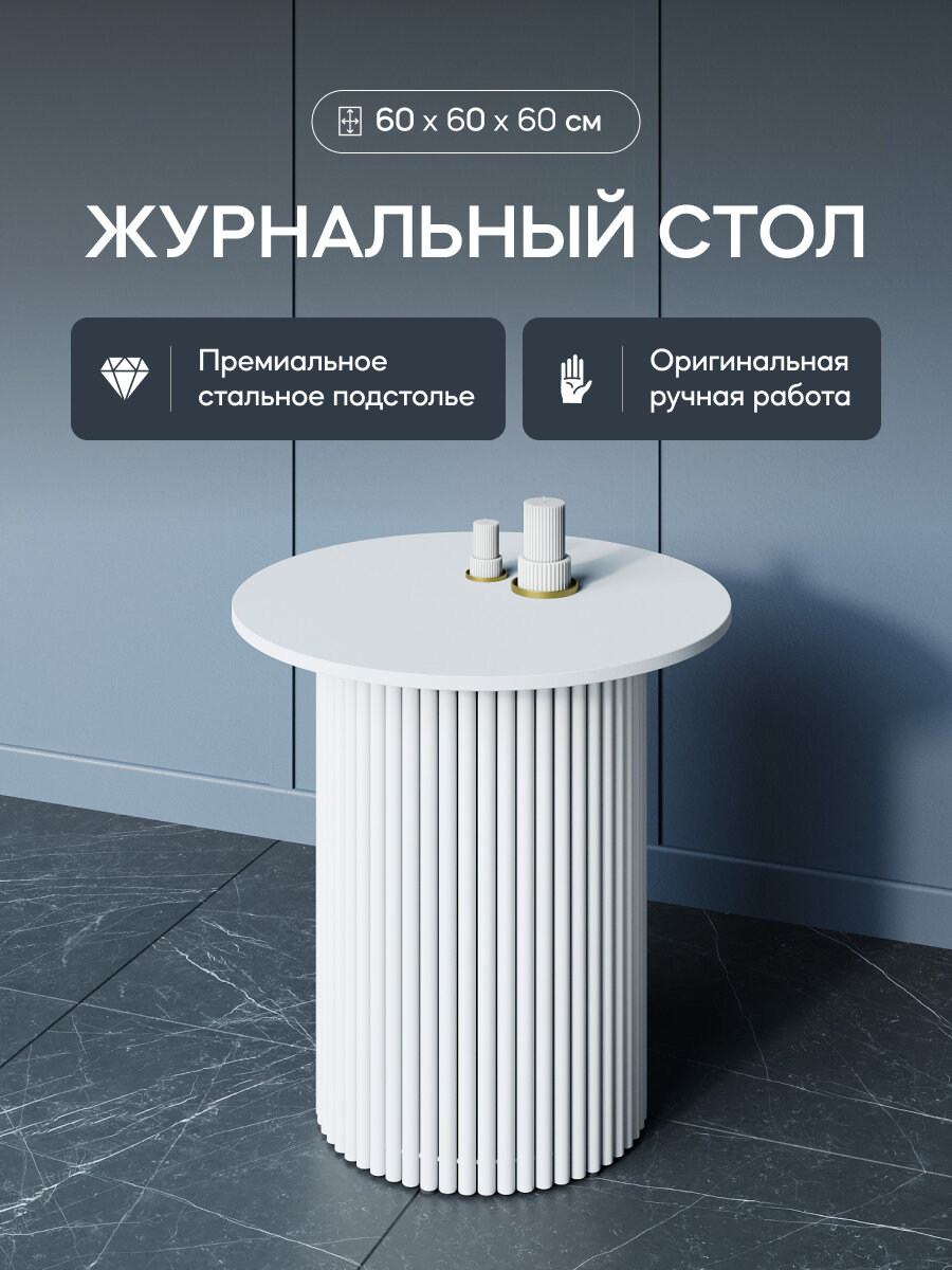 Отзывы на GEN GROUP Стол журнальный белый TRUBIS Wood S D60 с металлическим подстольем