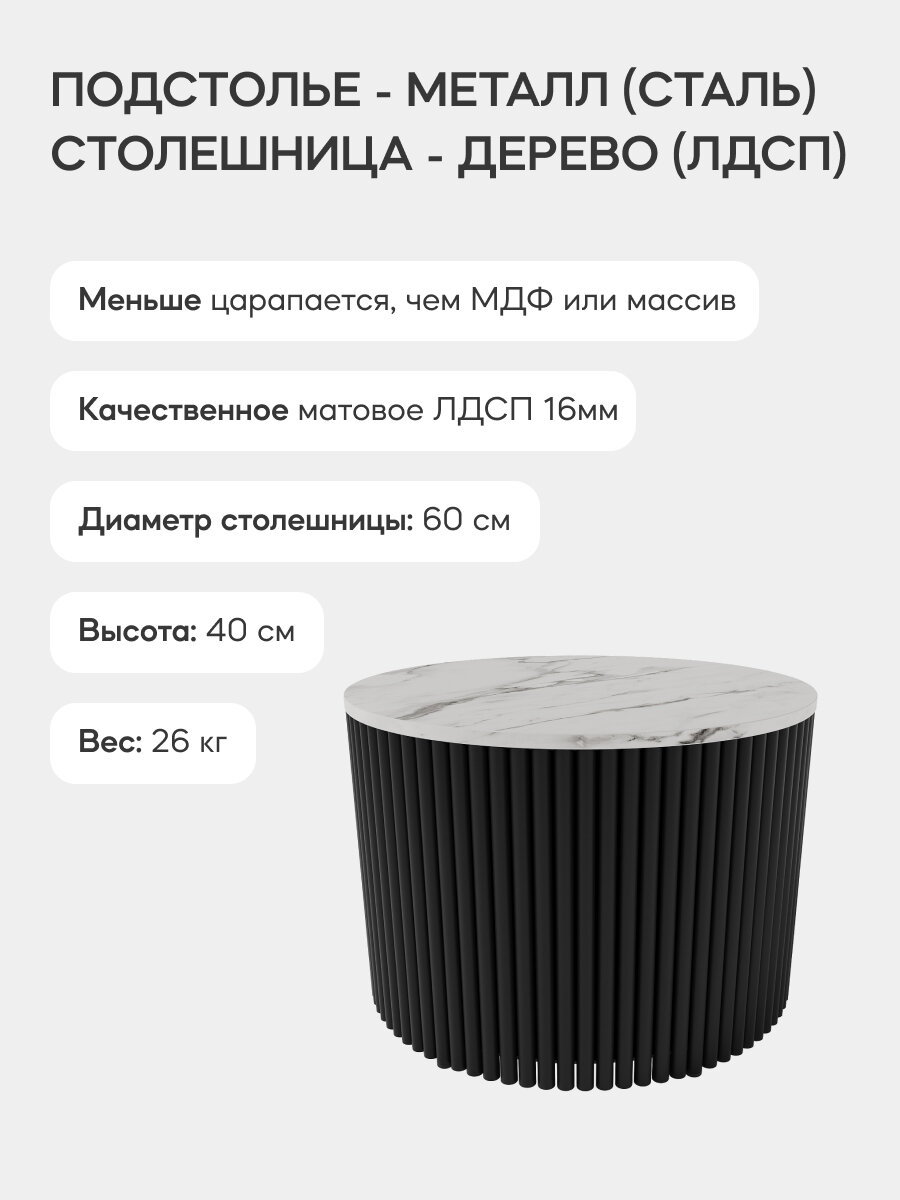 10 цен на GEN GROUP Стол журнальный лофт TRUBIS Wood M D60 белый мрамор с черным металлическим подстольем