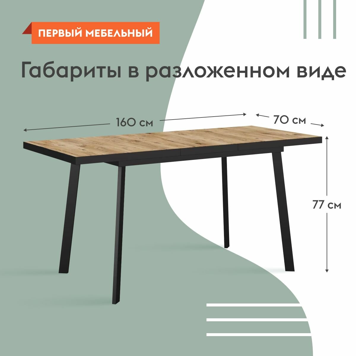 Кухонный стол Бернс 120х77х70 см, раздвижной, Дуб Вотан, Черный металл информация: