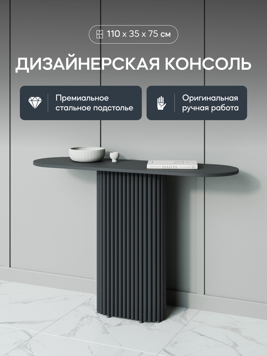 Отзывы на GEN GROUP Консоль TRUBIS с чёрным металлическим подстольем и чёрной столешницей, 110*35см