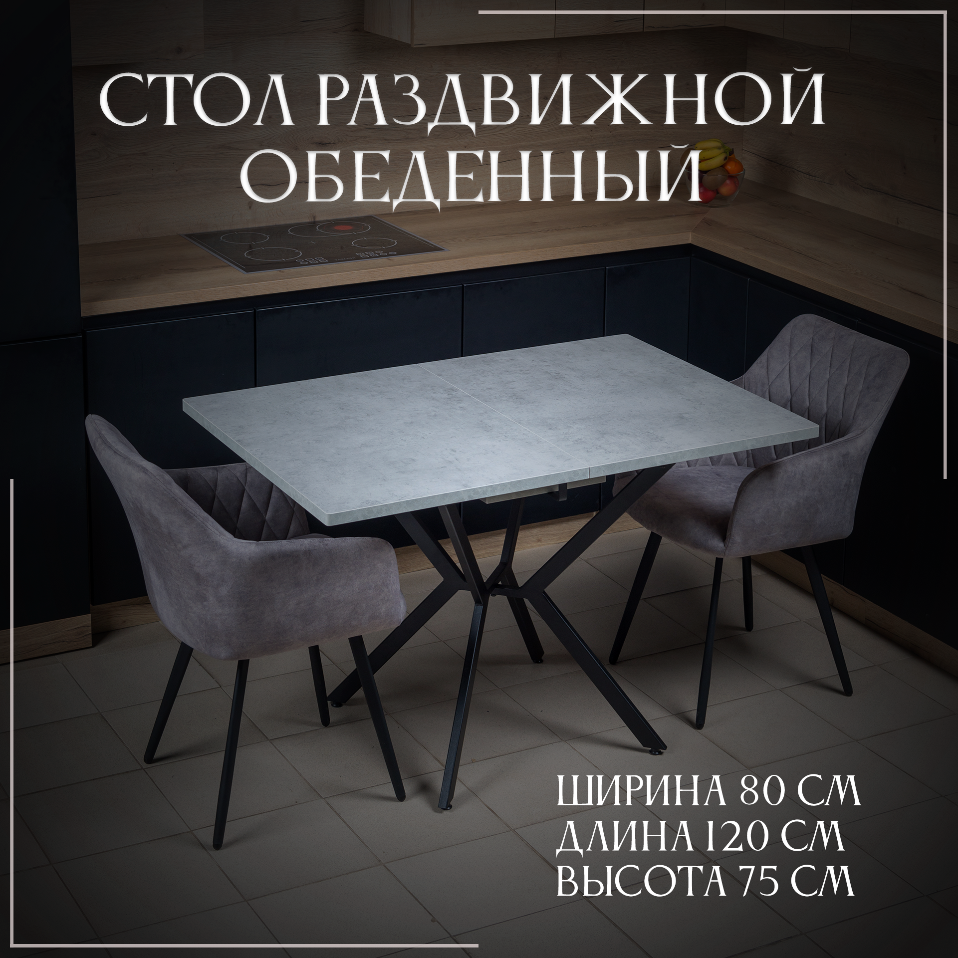 Стол кухонный раздвижной от Фабрики Лофт Сити "Париж", 120х80, Бетон Чикаго Светлый информация: