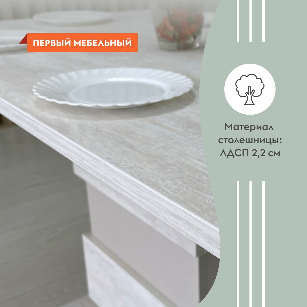 Кухонный, обеденный стол Мортен раздвижной, раскладной, на одной ножке, 118х76х76 см, Ледяное дерево / Персидский жемчуг информация: