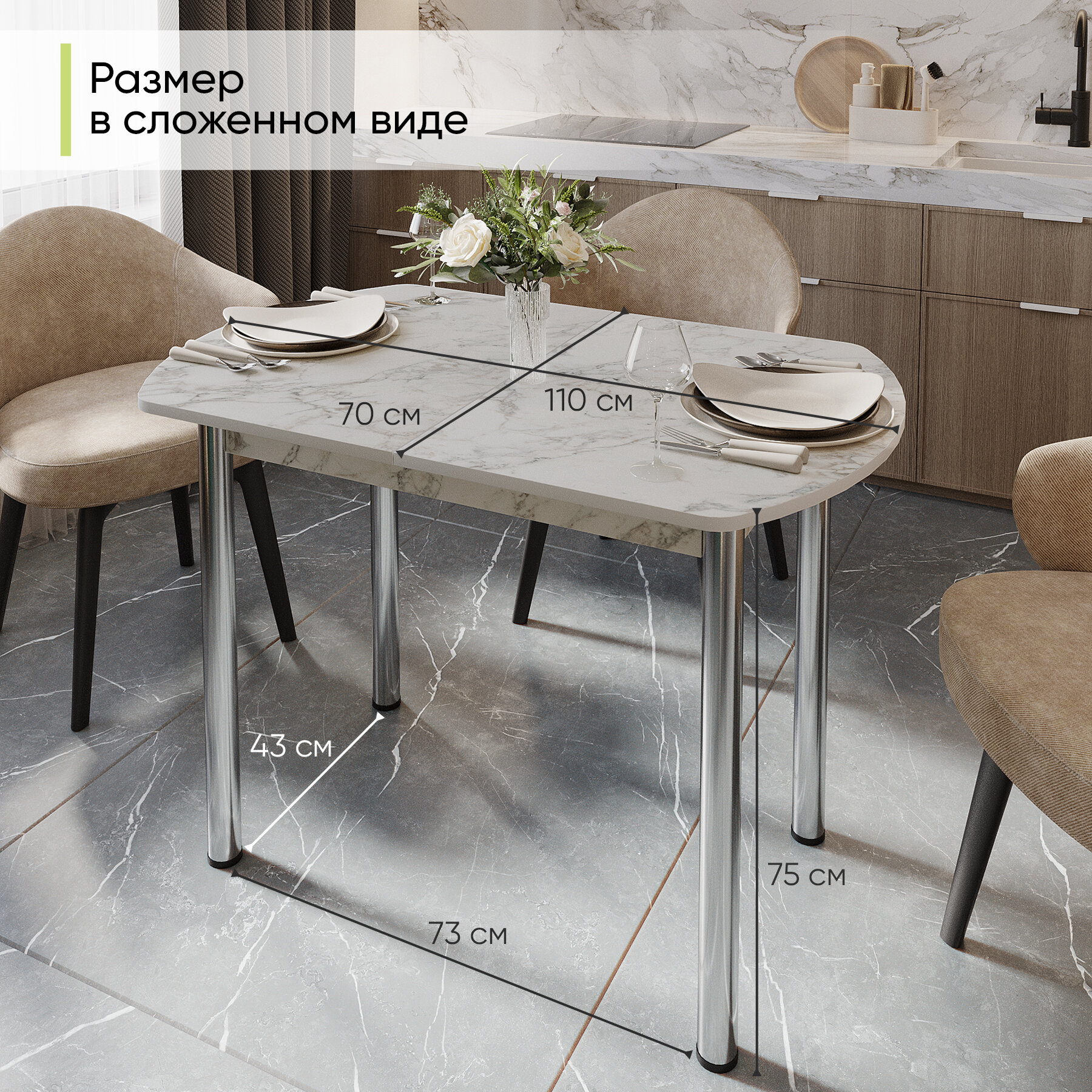 Стол кухонный обеденный раздвижной европейский, Белый мрамор, 110-140х70х75 см информация: