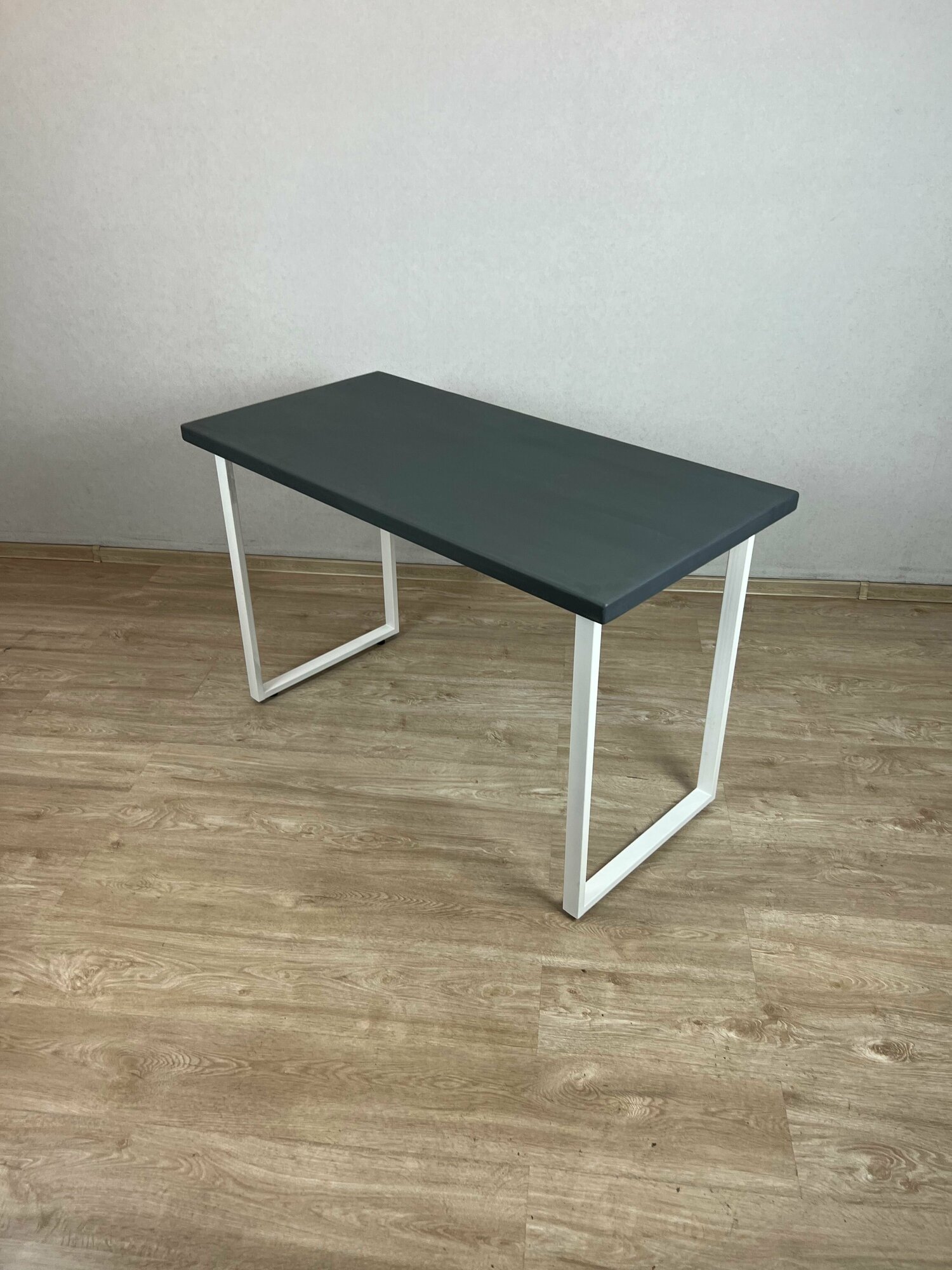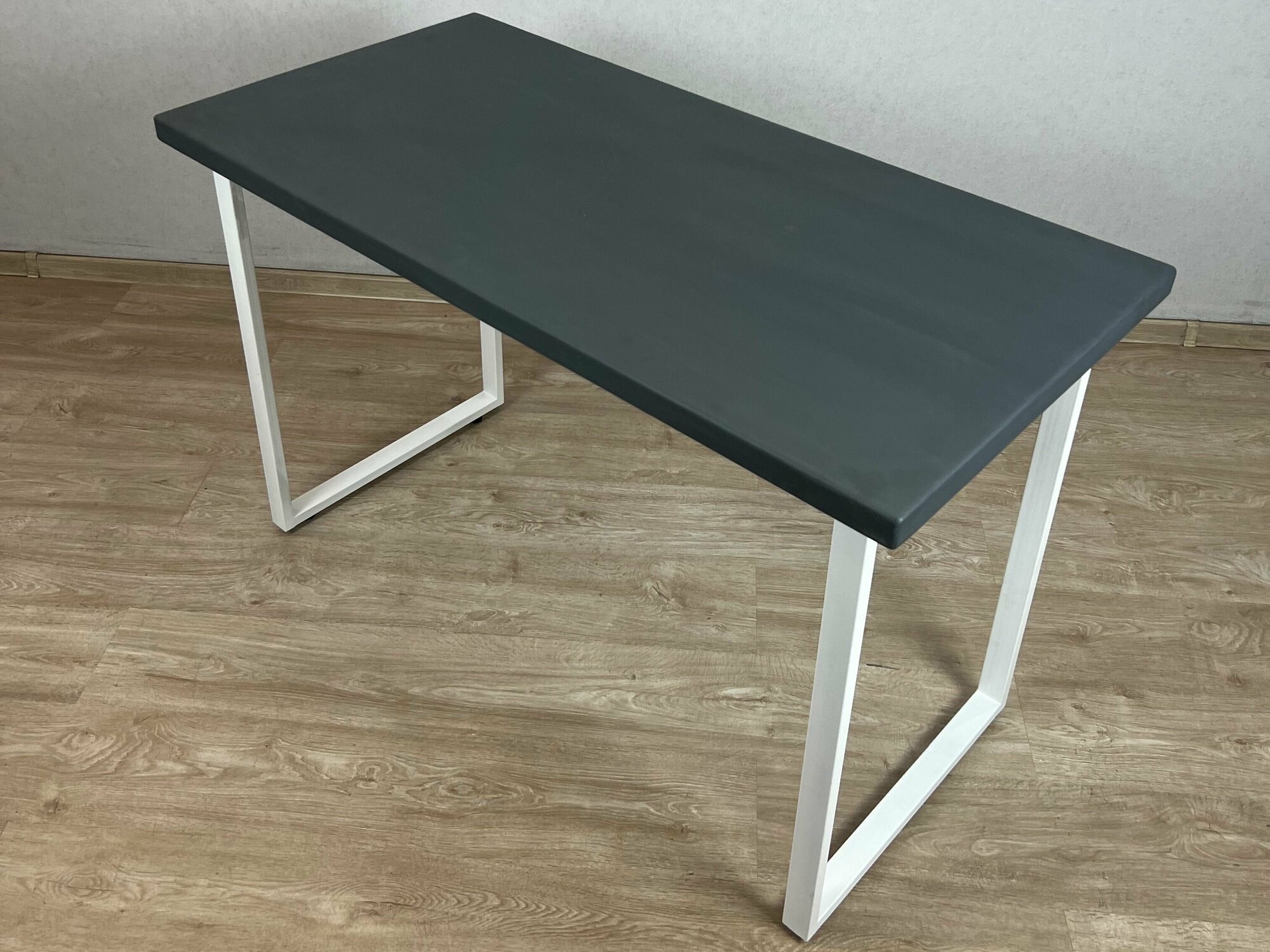 Стол кухонный Loft со столешницей цвета антрацит из массива сосны 40 мм и белыми металлическими ножками, 90х80х75 см информация: