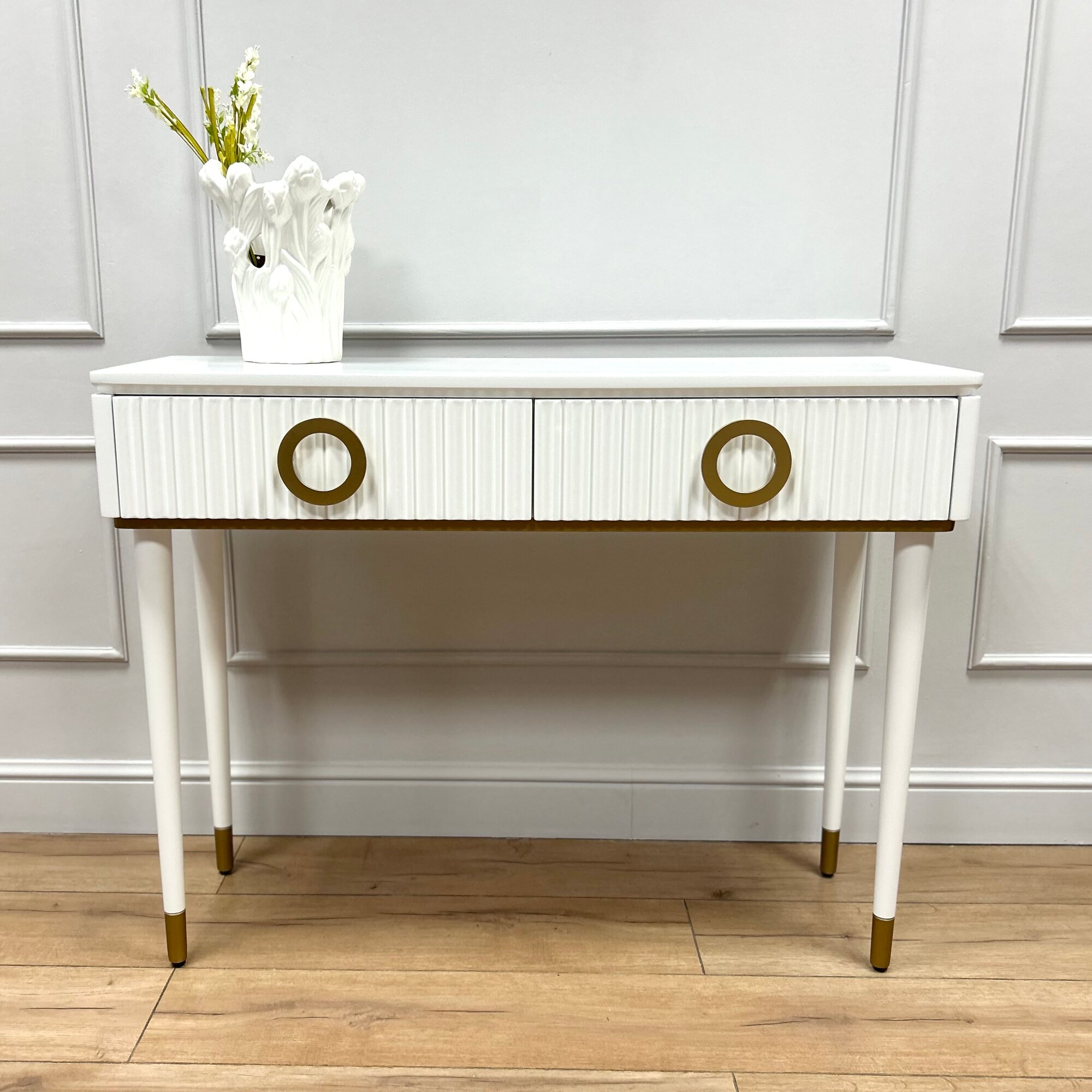 Консольный столик туалетный белая эмаль МДФ, узкая консоль в прихожую с ящиками на ножках из бука, Rettile 100х35х77 см информация: