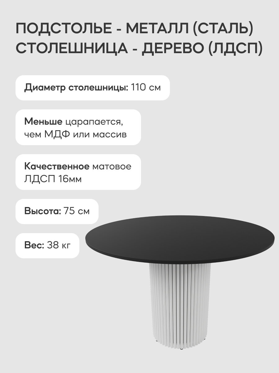 GEN GROUP Кухонный обеденный стол TRUBIS Wood L D110 см черный с белым подстольем информация: