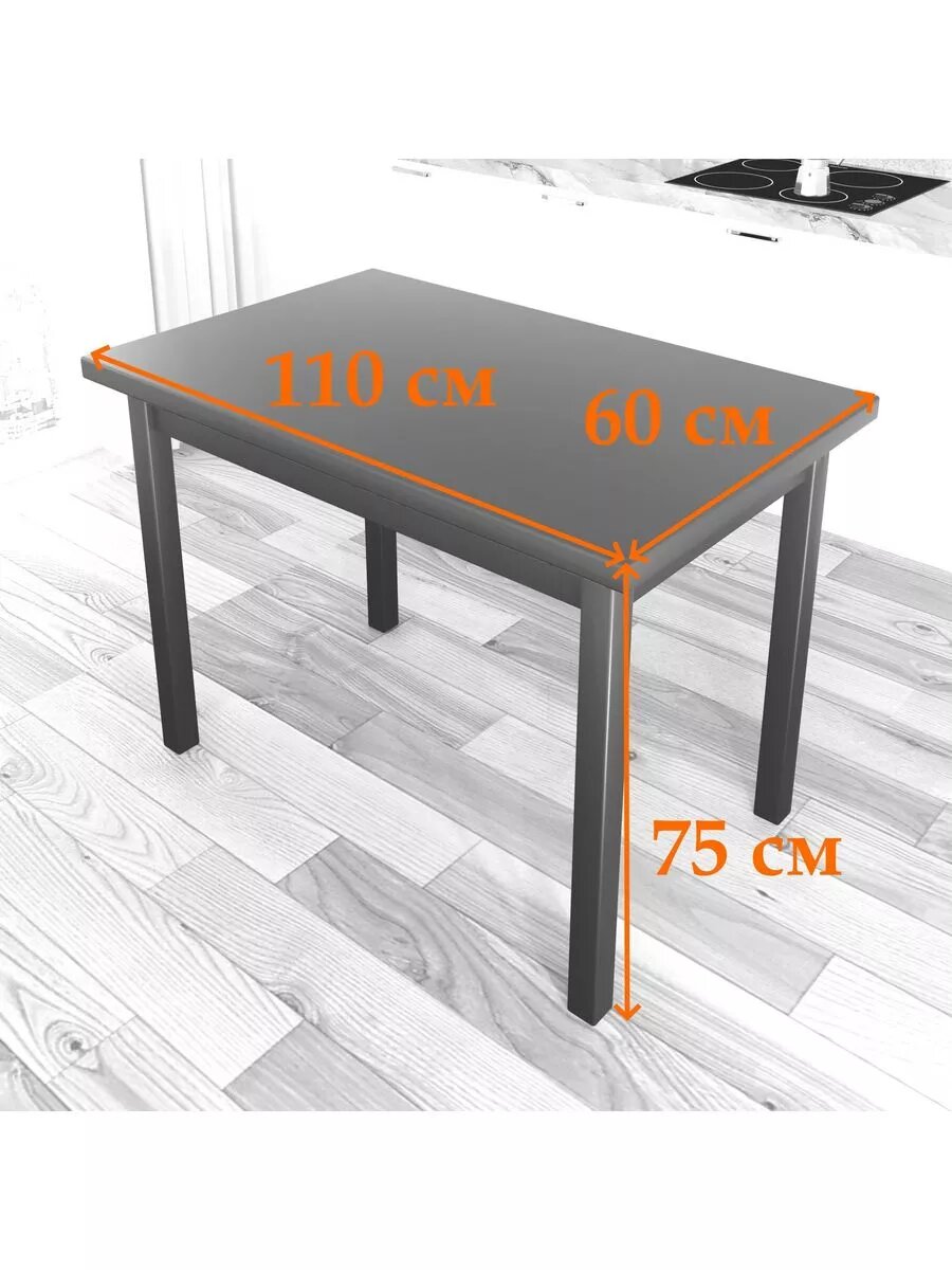Стол кухонный Loft со столешницей цвета антрацит из массива сосны 40 мм и черными металлическими крестообразными ножками, 90х60х75 см