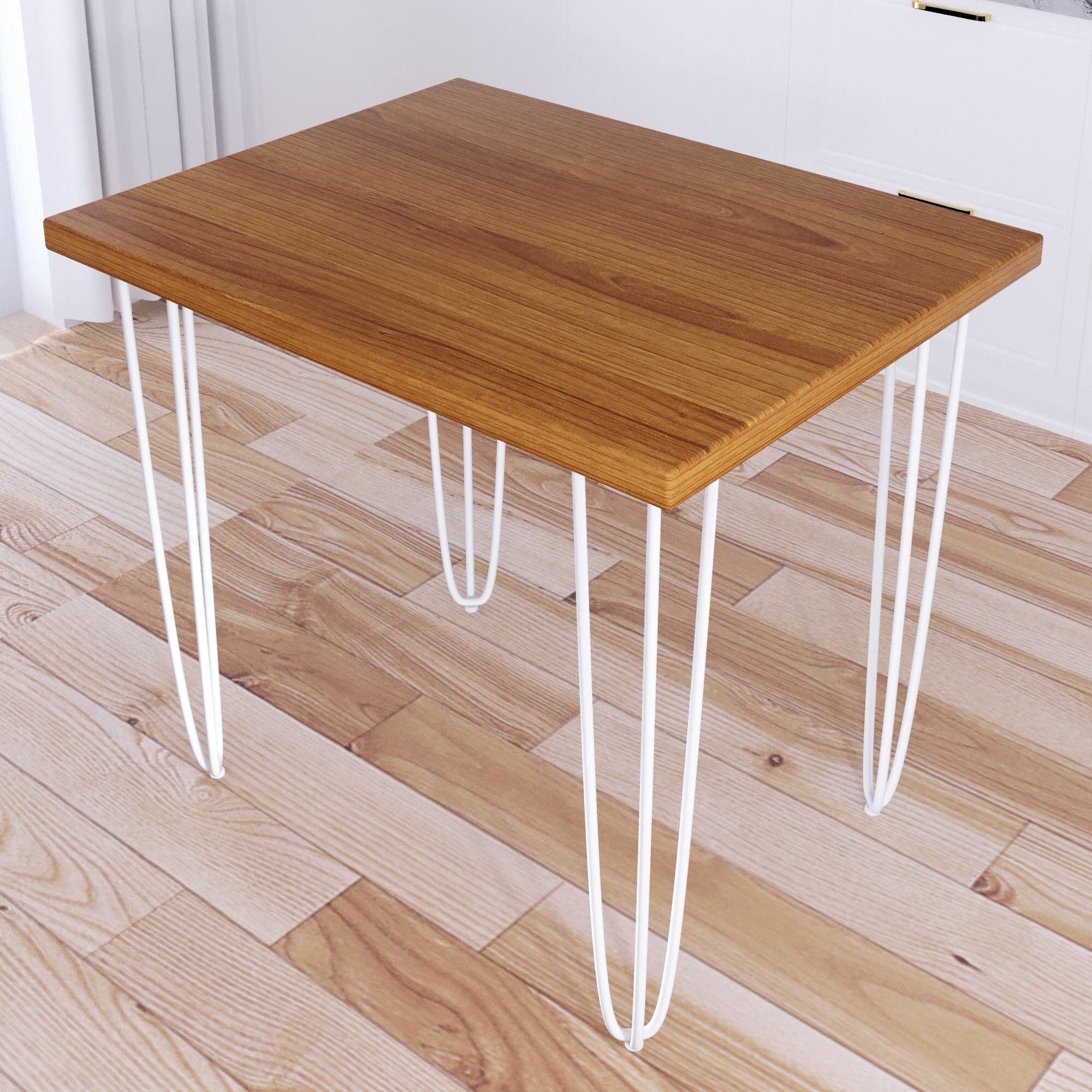 Стол кухонный Loft со столешницей цвета ольхи из массива сосны 40 мм на белых металлических ножках-шпильках, 70x60х75 см 13 778 ₽