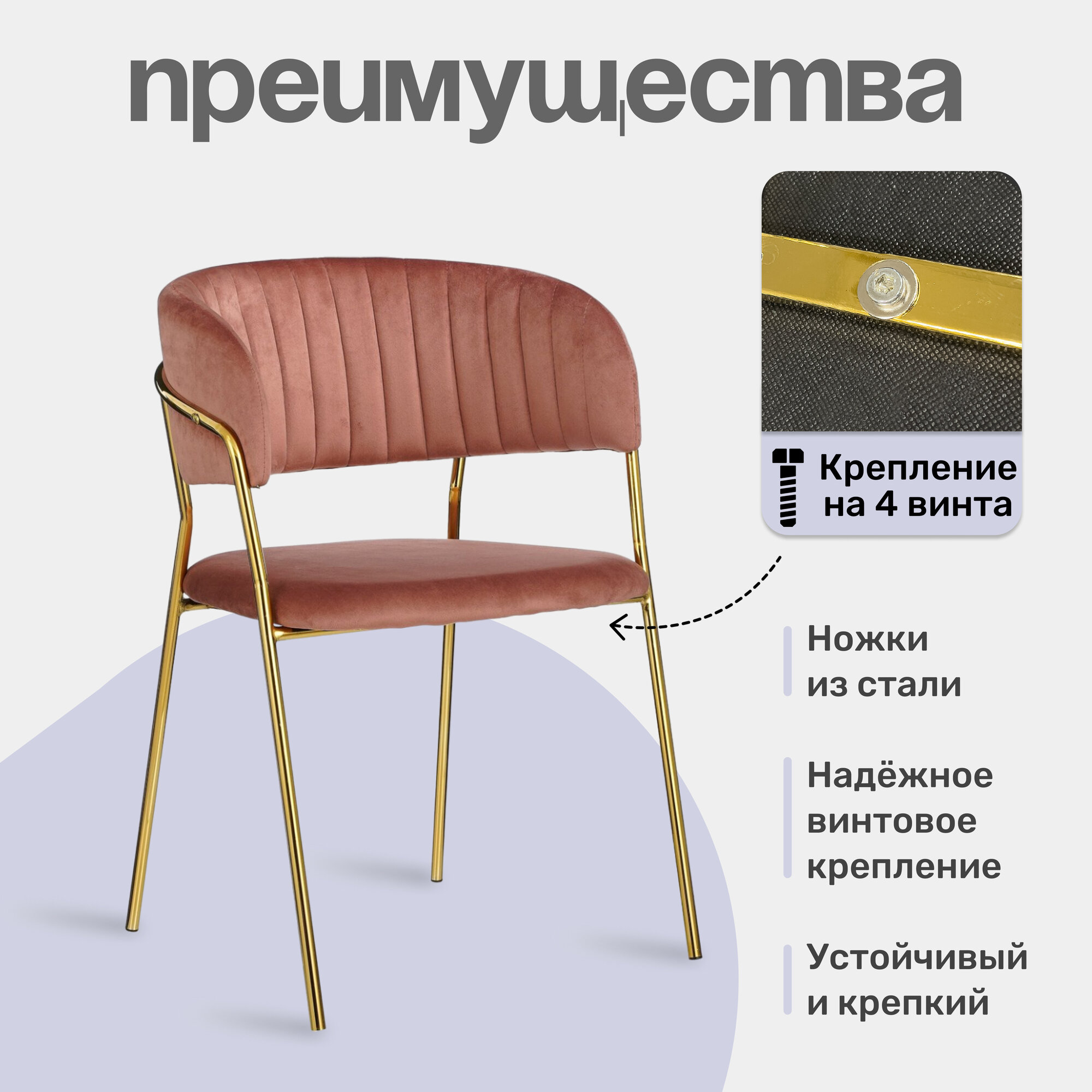 Характиристики этого товара не найдены!Отзывы на Стул мягкий с подлокотниками HESBY Whispered Fusion розовый с золотыми ножками